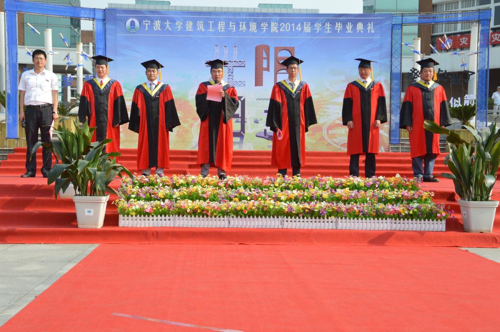 首先,院党总支书记王益澄教授宣布毕业典礼正式开始,并介绍出席此次典礼的领导和嘉宾。接着院党委副书记俞金波老师宣布获得2014届省级、校级、院级优秀毕业生名单。在学生感言后,学院院长郑荣跃教授对2014届毕业生表示祝贺,希望他们能脚踏实地,怀有理想之心,走出校门以后,继续关心、支持母校的建设和发展。典礼的最后,学院领导们为毕业生颁授学位(拨穗),请毕业生同学依次上台并合影。