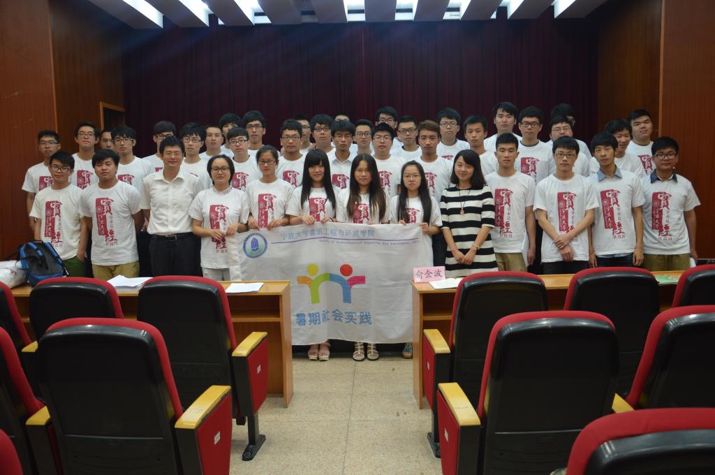 2014年暑期社会实践出征仪式在学院报告厅举行。院党委副书记俞金波老师,院团委书记沈妍伶老师,学工办周双双、吴燕丽老师以及各暑期社会实践小分队代表参加了仪式。