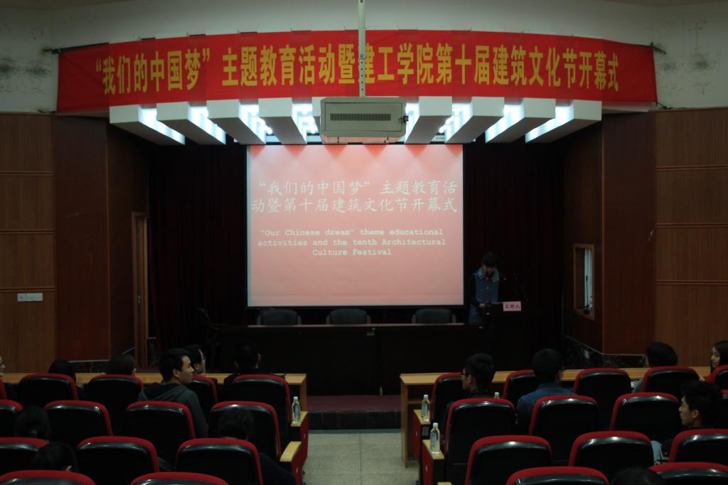 4月2日晚6点,“我们的中国梦”主题教育活动暨建工学院第十届建筑文化节开幕式在学院报告厅隆重举行,学院党委副书记袁红辉老师为本次活动致开幕词。袁红辉老师突出强调了“中国梦”作为当今社会主题对于大学生学习活动的重要性,鼓励建工学子踊跃参与到活动中来。