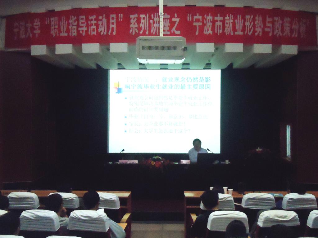 报告厅为广大师生作了题为“宁波市就业形势与政策分析”的专题讲座。