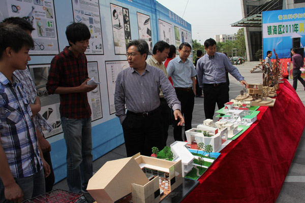 学生展示了具有建工特色的科技创意作品,吸引了许多市民驻足观看,区委副书记、区长陈召华还就蜜桃视频