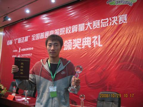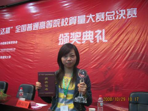 工程管理05班的黄珍珍、徐骁锋两位同学分获二、三等奖,其指导教师尹珺同时荣获“优秀指导老师”奖。