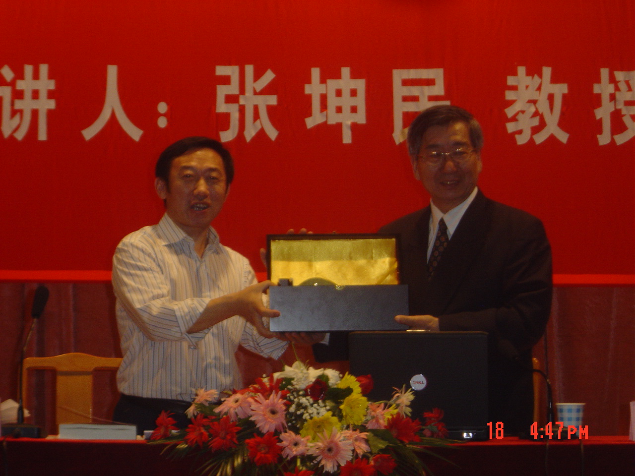 张殿发院长主持报告会并赠送纪念品