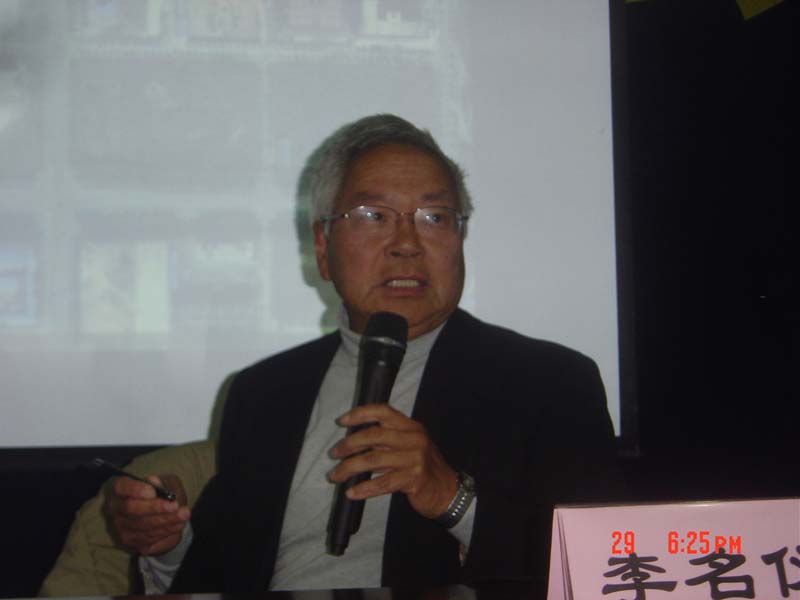 在当晚的报告中,李先生结合图发概括介绍了深圳招商银行、深圳市民中心、联想集团研发大楼等七个在国内有代表性的作品及设计思路。李先生强调了建筑设计作品要与周边环境的协调和融合,要善于运用多种建筑材料达到不同的艺术效果,同时要在建筑内部空间的设计上体现以人为本的设计理念。