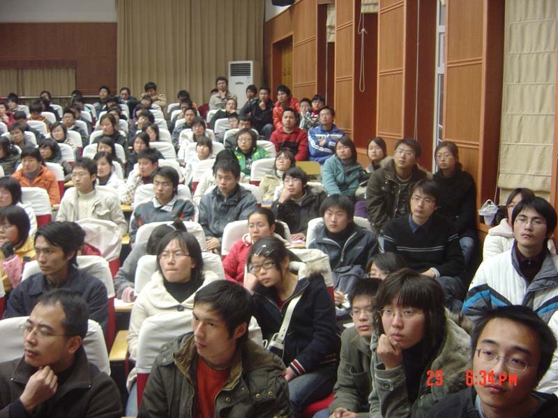 报告厅座无虚席,广大慕名而来的同学挤在台前廊间静静地聆听大师的教诲。当晚,70多岁高龄的美籍华人、国际知名建筑大师、蜜桃视频