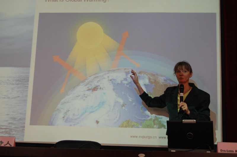 Eva-Lena Aronsson女士是瑞典籍化学工程师,在瑞典环境保护领域享有很高声誉和杰出贡献。1978年开始她的化学研究生涯。多次参与瑞典以及周边国家环境保护活动,多次为瑞典高校的学生讲授相关知识。她在报告中就全球的环境问题进行了简要分析,并从可持续发展的角度,针对如何解决水、气、废、生态等问题进行了详细讲解,其中还介绍了3R和LCA理念,受到了广大师生的欢迎。Eva-Lena Aronsson女士一行还与蜜桃视频