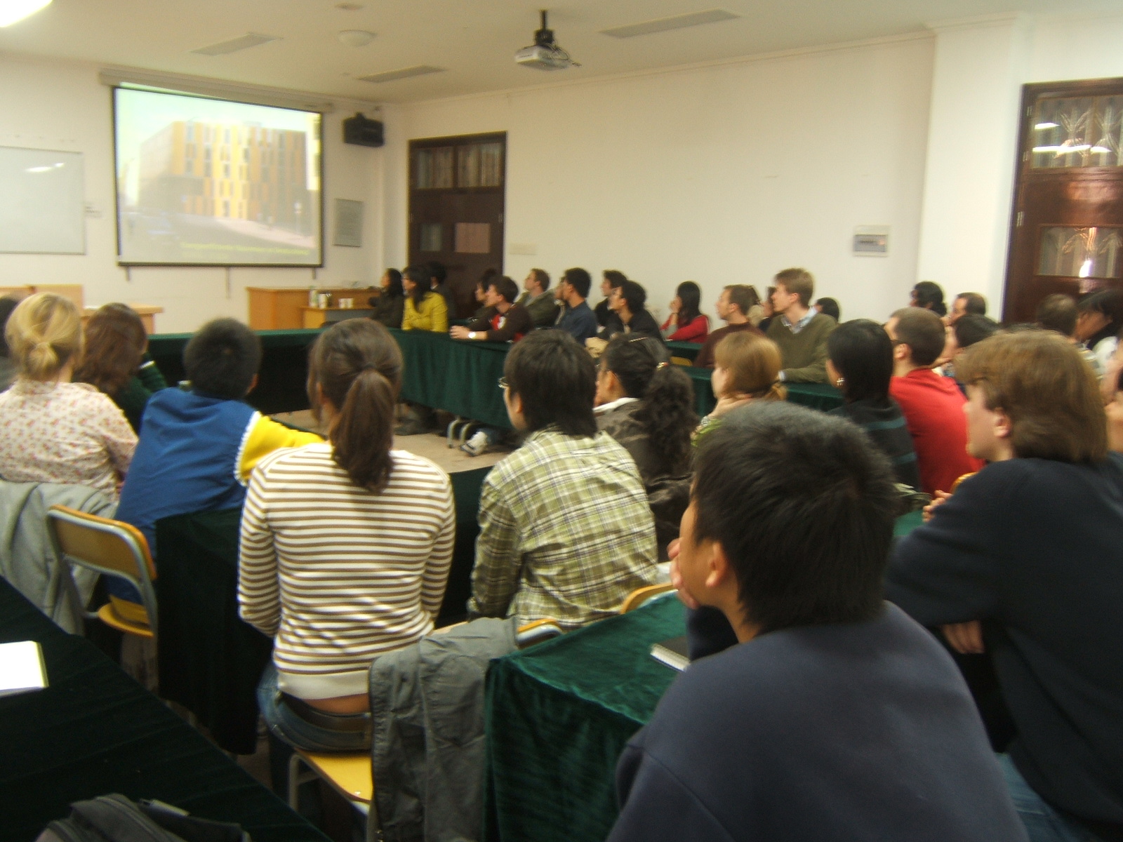 陈芳、王伟鹏两位老师用英文分别作了《中国地域建筑特色》、《中国古代建筑》的学术讲座。最后双方学生还介绍了彼此的学习状况,蜜桃视频