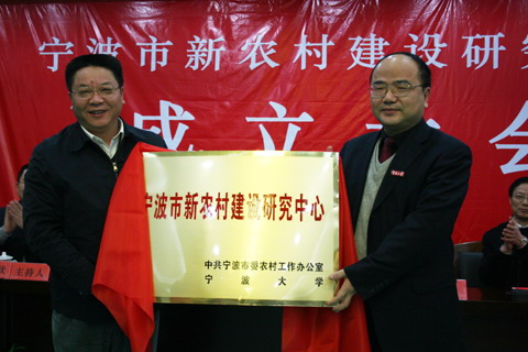 联合发文的“宁波市新农村建设研究中心”成立文件;宁波市副市长陈炳水为研究中心授牌,蜜桃视频