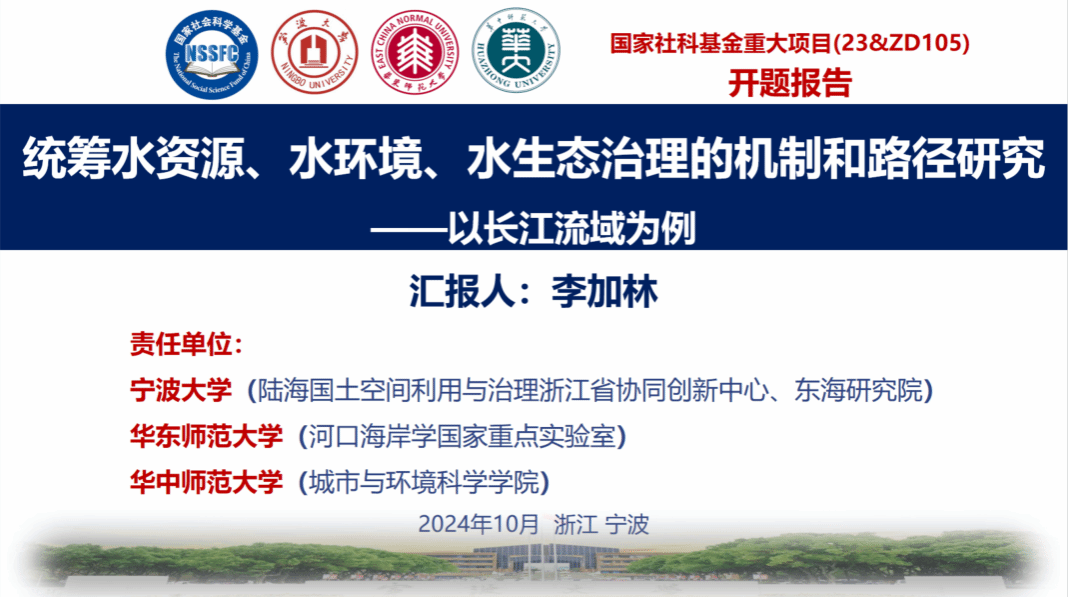10月11日下午,由蜜桃视频 李加林教授担任首席专家的国家社科基金重大招标项目“统筹水资源、水环境、水生态治理的机制和路径研究——以长江流域为例(编号23&ZD105)”开题论证会在宁波成功召开。