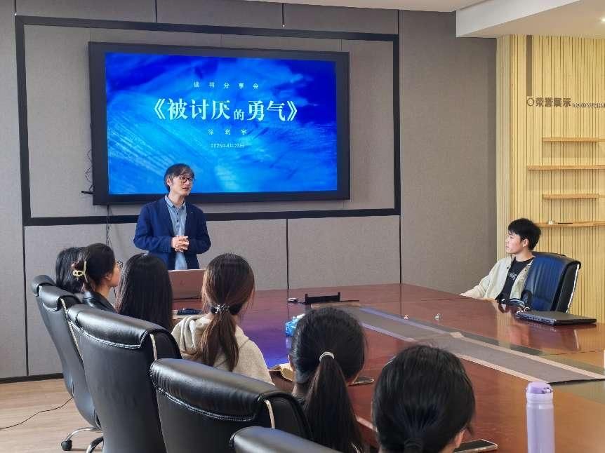 4月23日 15:30,土木工程与地理环境学院 “匠心手作” 思禹青年工作室于思禹建工楼 A408 举办心理书籍分享会。学院学工办徐晓宇老师担任主讲,围绕阿德勒心理学经典著作《被讨厌的勇气》,结合学生现实情况展开分享,20 余名学生现场参与。