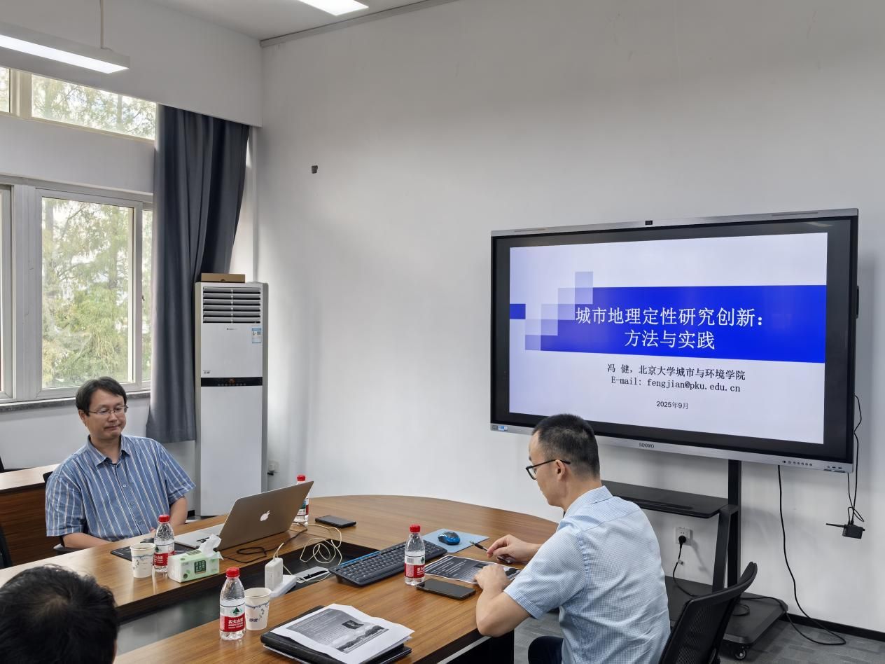 9月19日上午,我院成功举办宁波大学地理科学前沿论坛2025年第26讲暨浙江省陆海国土空间利用与治理协同创新中心主题论坛第20讲。本次学术论坛以“城市地理定性研究创新:方法与实践”为核心主题,特邀北京大学城市与环境学院冯健研究员担任主讲嘉宾,由我院执行院长李加林教授主持,马仁锋、林雄斌、罗旭、乔观民、袁海红、高兴川、陈妤凡、金文纨等骨干教师及地理与空间信息技术系师生共同参加本次论坛,现场学术氛围浓厚。