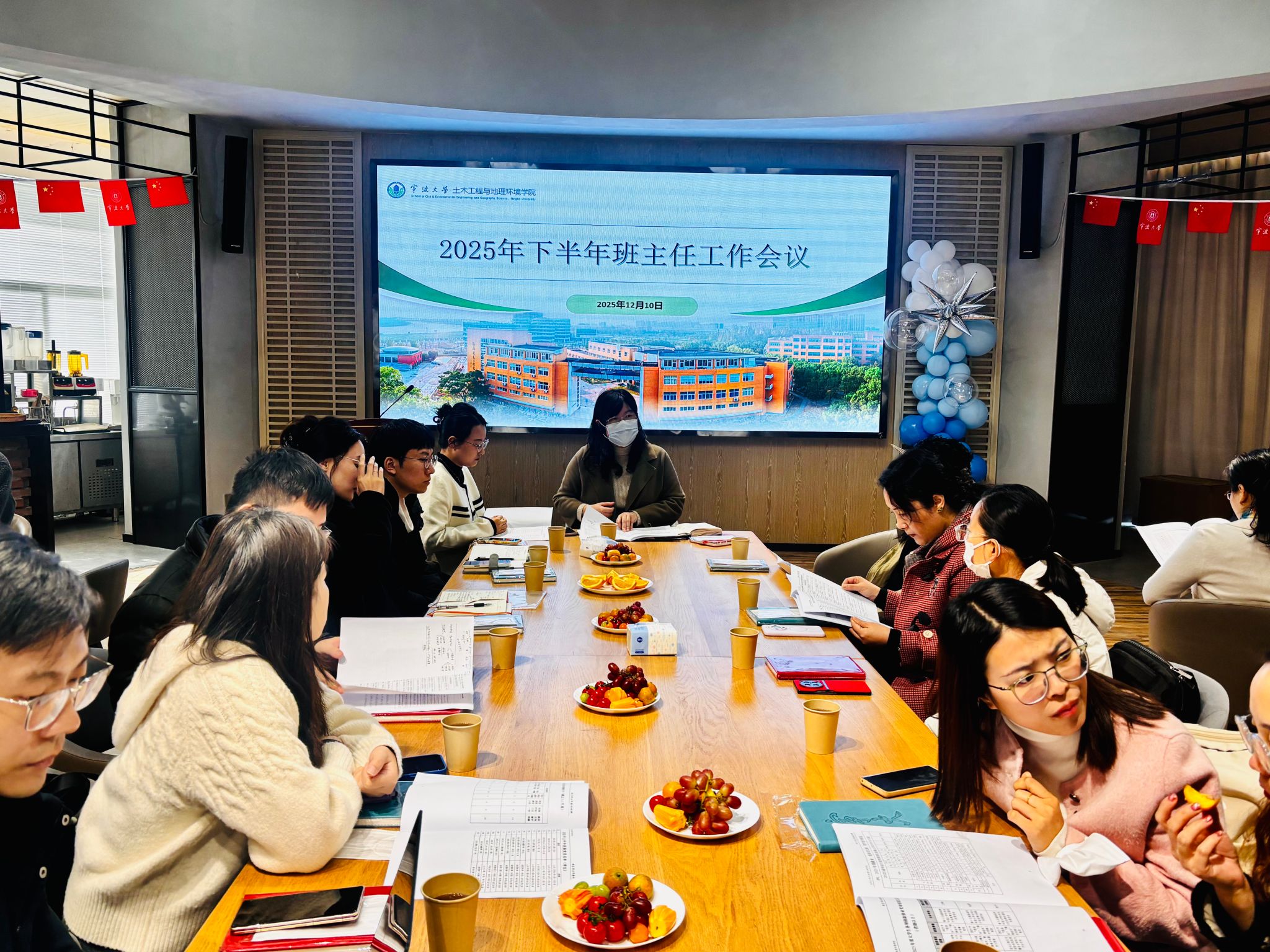 12月10日上午,我院在宁波大学校友之家组织召开2025年下半年班主任工作会议。会议由学院党委副书记兼关工委副主任朱剑琼老师主持,全体班主任、学工办及研工办成员参加了本次会议。