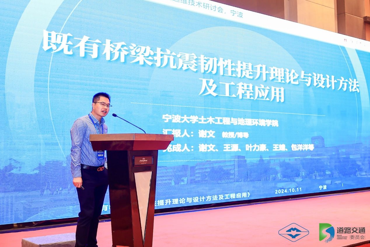 在下午举行的长大桥隧养护管理与安全运维主题论坛上,行业专家学者贡献了6个精彩纷呈的主题报告,其中宁波大学土木工程与地理环境学院谢文教授作了题为“既有桥梁抗震韧性提升理论与设计方法及工程应用”的主题报告,分享了他在桥梁抗震领域的最新研究成果,为桥隧的养护与安全运维提供了新的理论支持和技术方案。