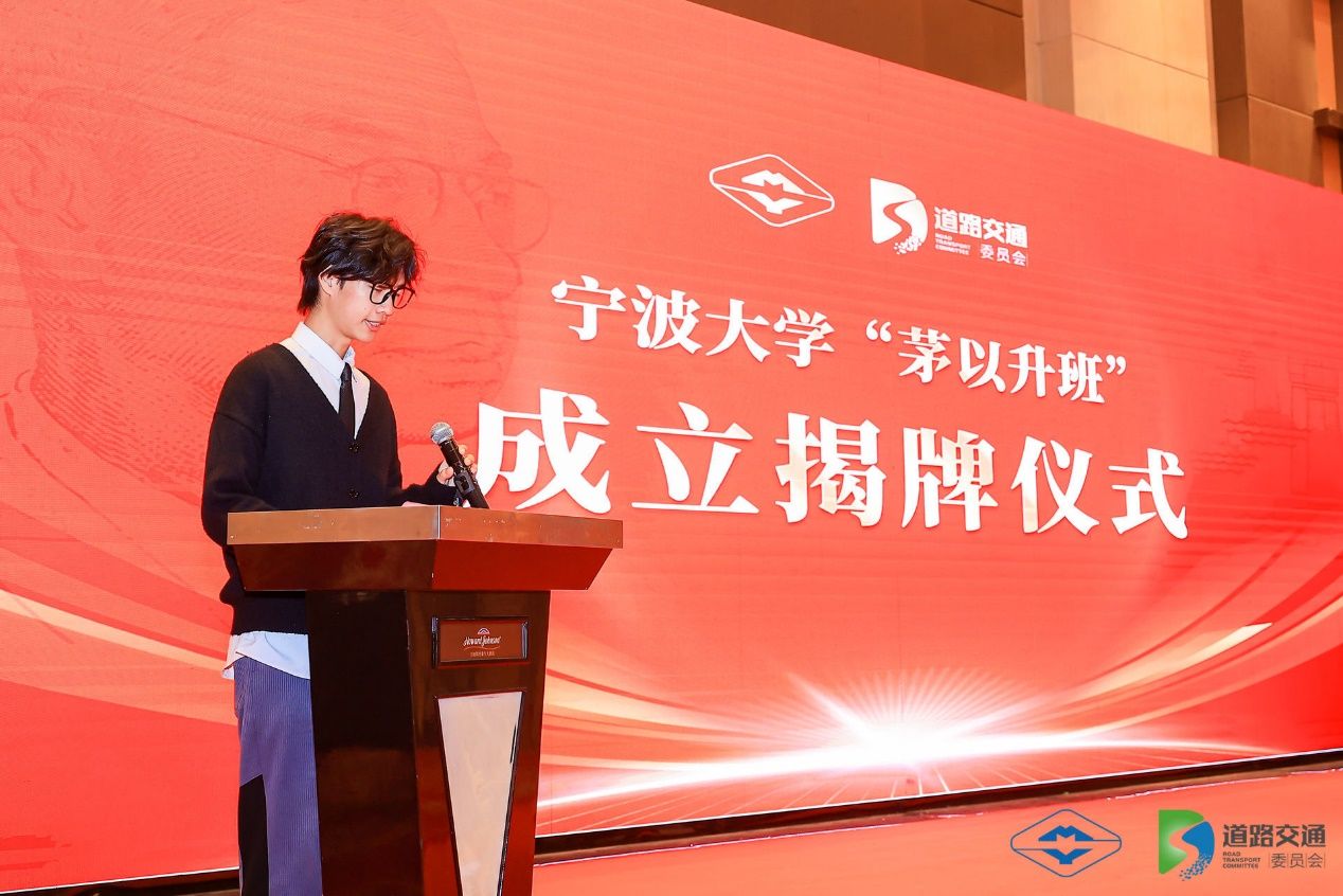 在开幕式上,还举行了宁波大学“茅以升班”成立揭牌仪式。茅以升科技教育基金会副秘书长兼道路交通委员会秘书长茅为中宣读批复,李伟平副校长与茅玉麟理事长共同为“茅以升班”揭牌。宁波大学首届“茅以升班”学生代表孙昱同学在揭牌仪式上发言,表达了对茅以升先生爱国精神和科学家精神的敬仰,并承诺将努力学习,为国家的土木工程事业贡献力量。