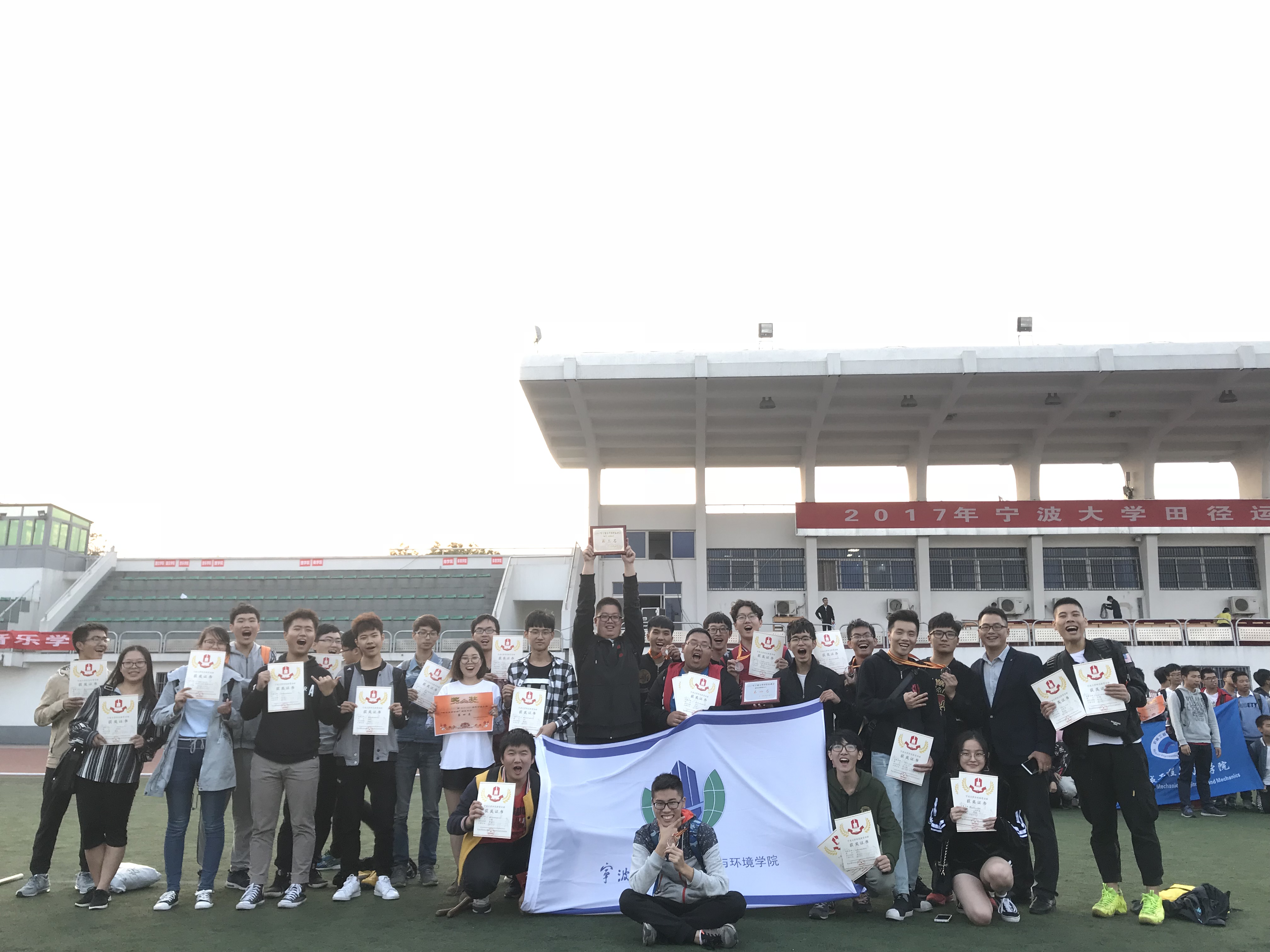 10月26日至27日,宁波大学2017年秋季田径运动会在田径场隆重举行,我院运动员们参加了多个运动项目,在建工人共同努力下,经过两天紧张而又激烈的比赛,男子团体总分第三名、男女团体总分第六名、趣味运动会团体总分第四名、阳光体育积分第四名,再创运动会佳绩!