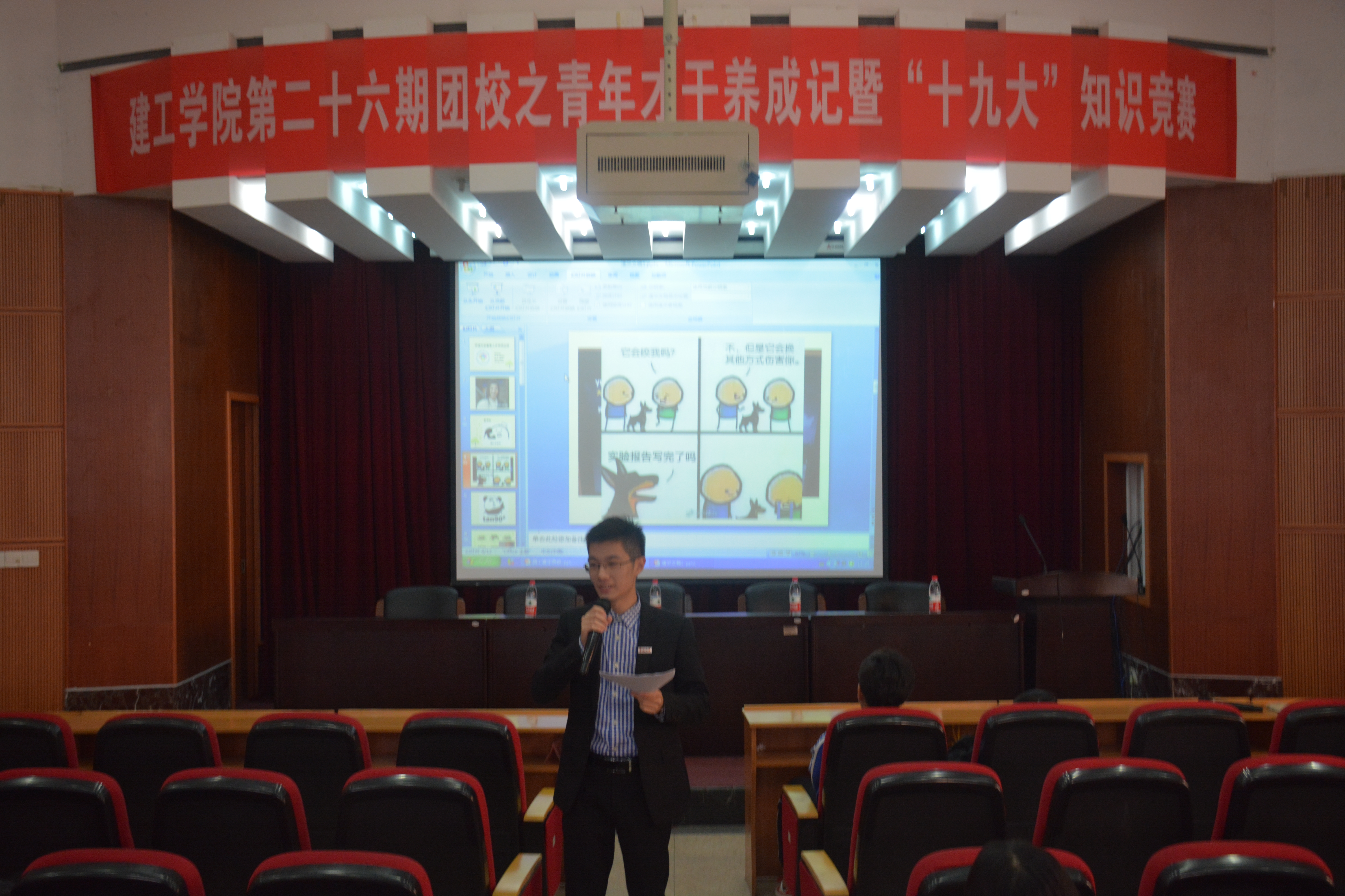 11月4日14:30分宁波大学建筑工程与环境学院第二十六期团校第三讲——政宣部十九大知识竞赛在建工学院报告厅举行。此次知识竞赛由建工学院团委政宣部部长童蝶宏主讲,建工学院团委、学联等几十位团校学员到场参加此次知识竞赛。