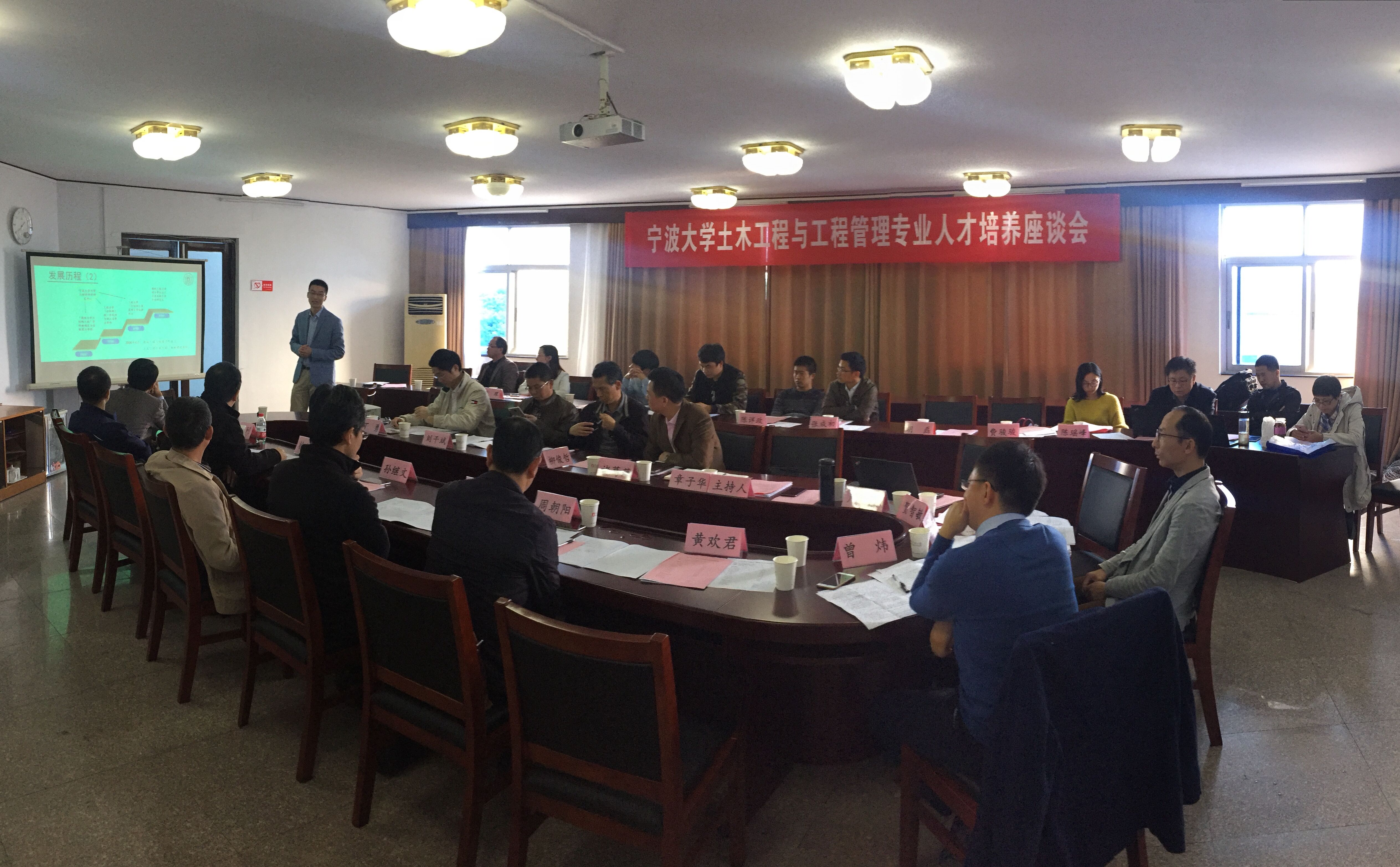 为进一步提升学院人才培养质量,满足社会和行业发展对人才培养提出的新要求,11月8日下午,宁波大学土木工程与工程管理专业人才培养座谈会在黄陈月莉楼407会议室召开。宁波市房屋设计院、宁波市政集团、宁波市建设集团、宁波市建工集团、宁波市高新区质监站等企事业单位的相关领导及建工学院往届毕业生代表应邀出席了座谈会。建工学院院长郑荣跃出席会议并讲话,教学副院长刘干斌、各研究所负责人和教师代表参加了座谈会。会议由土木工程系主任章子华主持。
