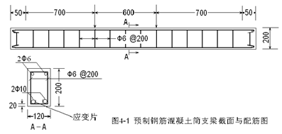 每侧三片。另外梁内受拉主筋上布置有电阻应变片两点。
