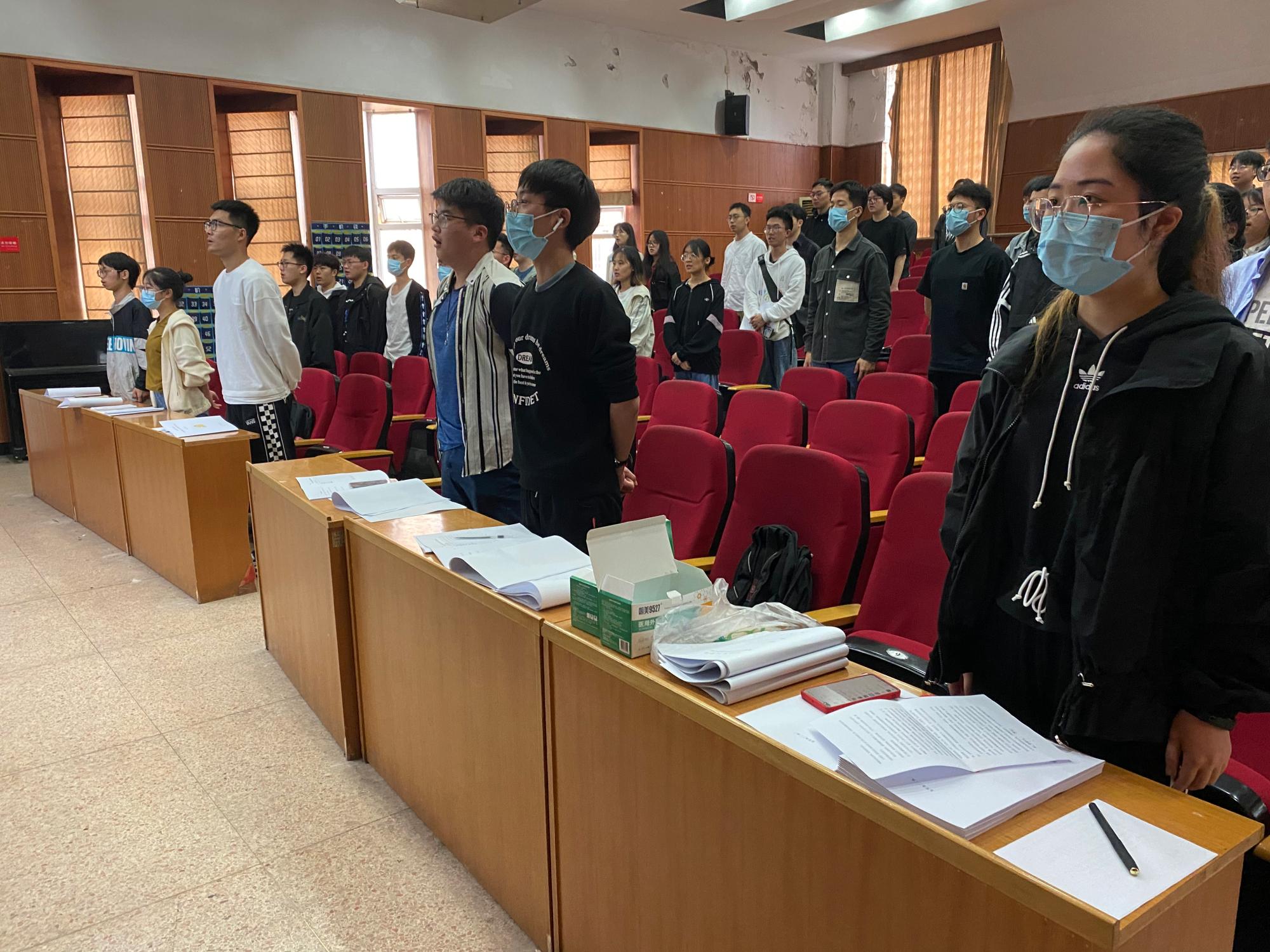 仪式开始,朱书记宣布分党校开班仪式正式开始,全体起立,奏国歌,在庄严的国歌声中,党校拉开帷幕。学院专职组织员霍婷婷向大家解读了党校安排和要求,发展对象徐之睿作为学员代表发言。