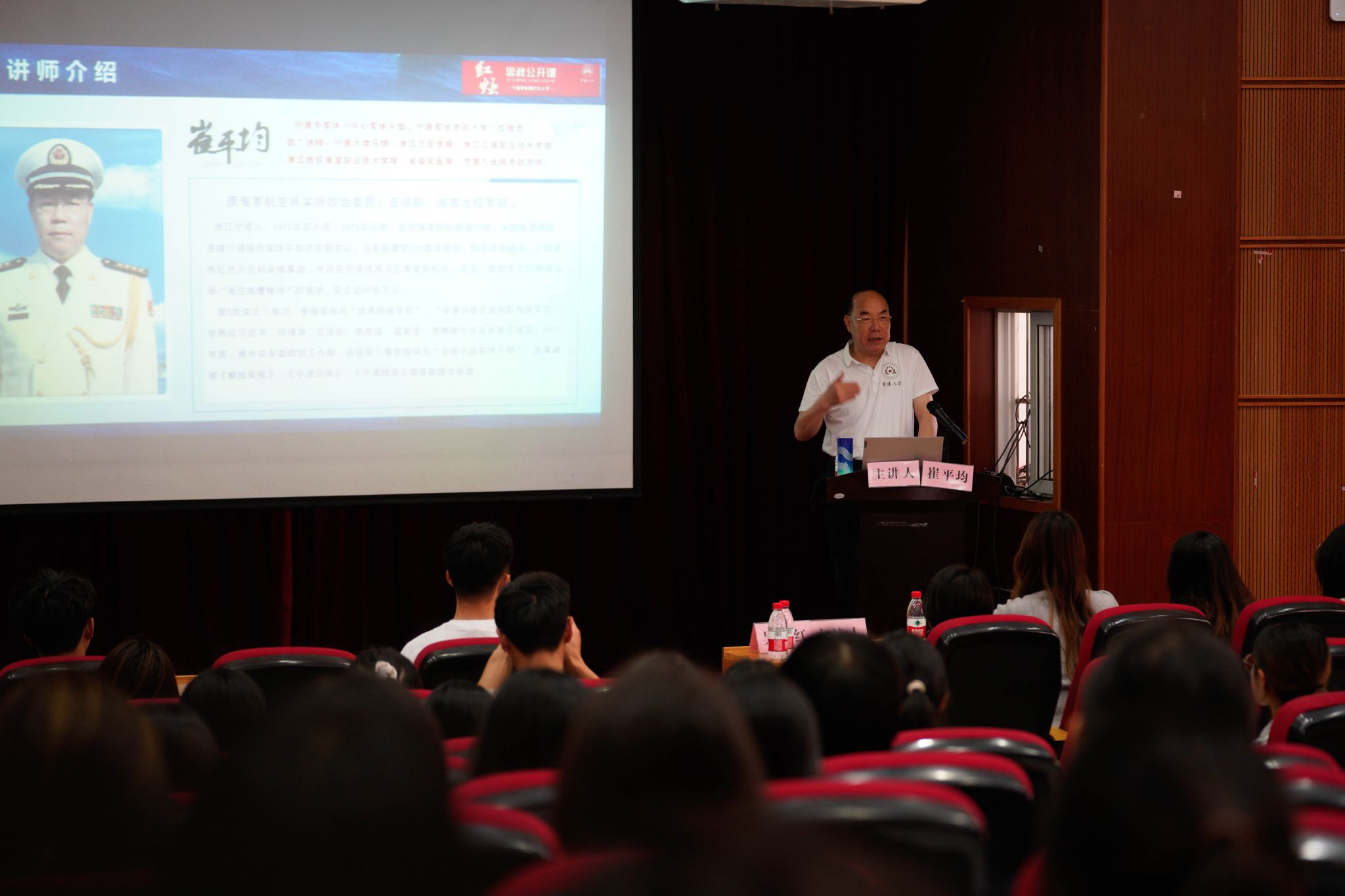5月22日下午,海军航空兵某师原政治委员崔平均在土木工程与地理环境学院报告厅以《英雄豪气霸海空,雄鹰精神代代传》为题,为土木工程与地理环境学院、马克思主义学院师生讲授了一堂震撼人心、事例丰富、情感深刻的形势政策课。本次课程在学院关工委的指导下,充分发挥“五老”作用,帮助师生传承红色基因砥砺奋斗精神。