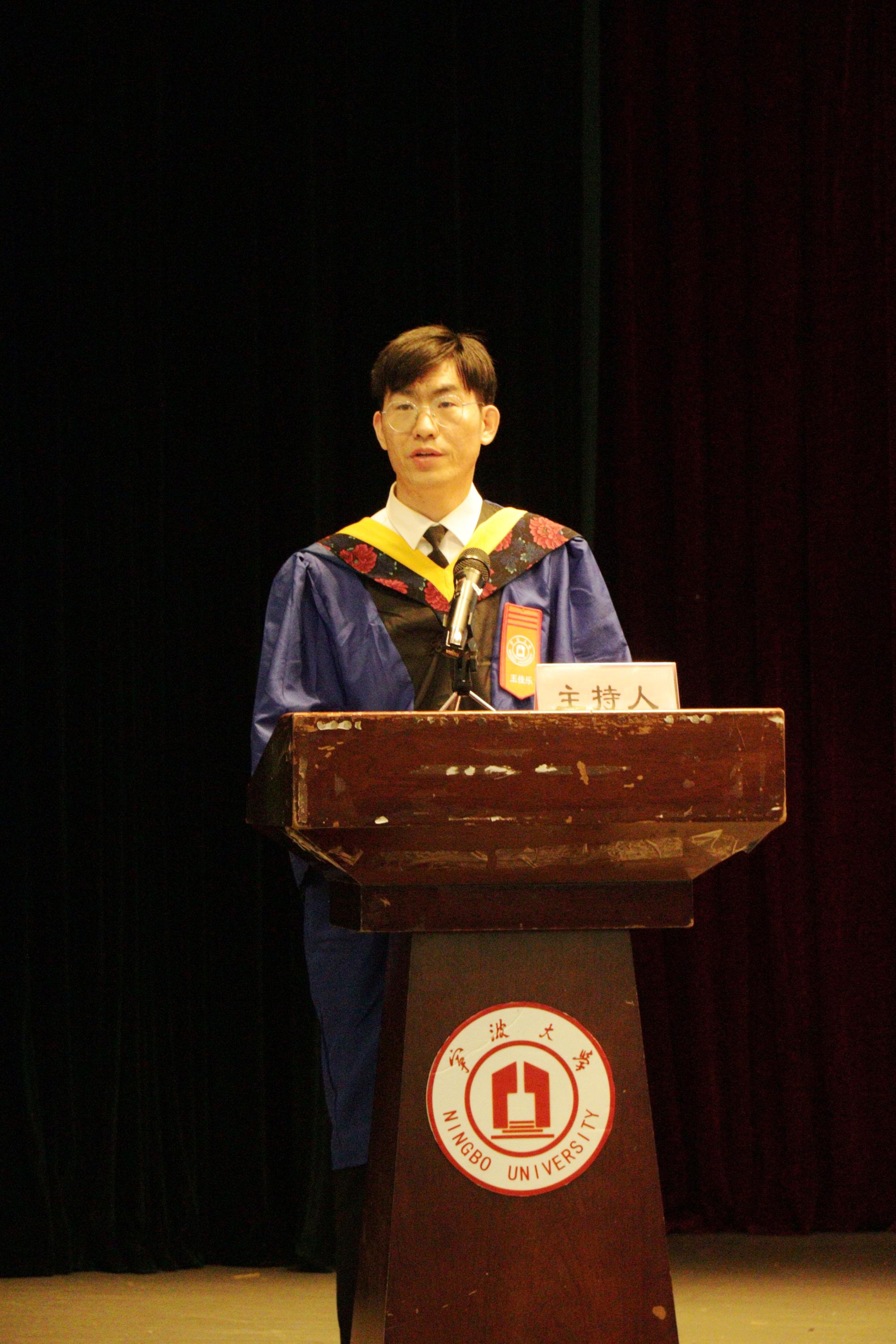宁波大学校友会建设分会、土环学院校友会秘书长,宁波宁大工程建设监理有限公司董事长,学院工会主席,19级工程管理毕业班班主任叶春阳副教授作为教师代表发言,他将自己中学毕业时同学送他的一句话转送给同学们:“人不可以有傲气,但不可无傲骨”,并寄语同学们通过不断努力,实现自己的人生价值。