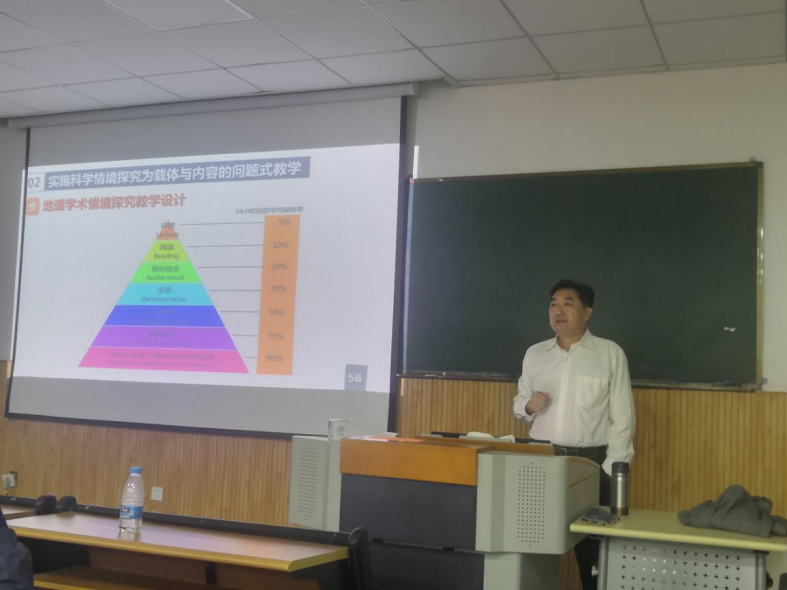 2020年11月15日下午,我院客座教授、浙江省特级教师、宁波中学常海东老师开展了“基于落实学科核心素养的地理教学转型探讨”的专题学术讲座。参加会议者有:地理科学(师范)专业本科生、地理学科教育研究生、宁海县青年地理学术骨干教师。