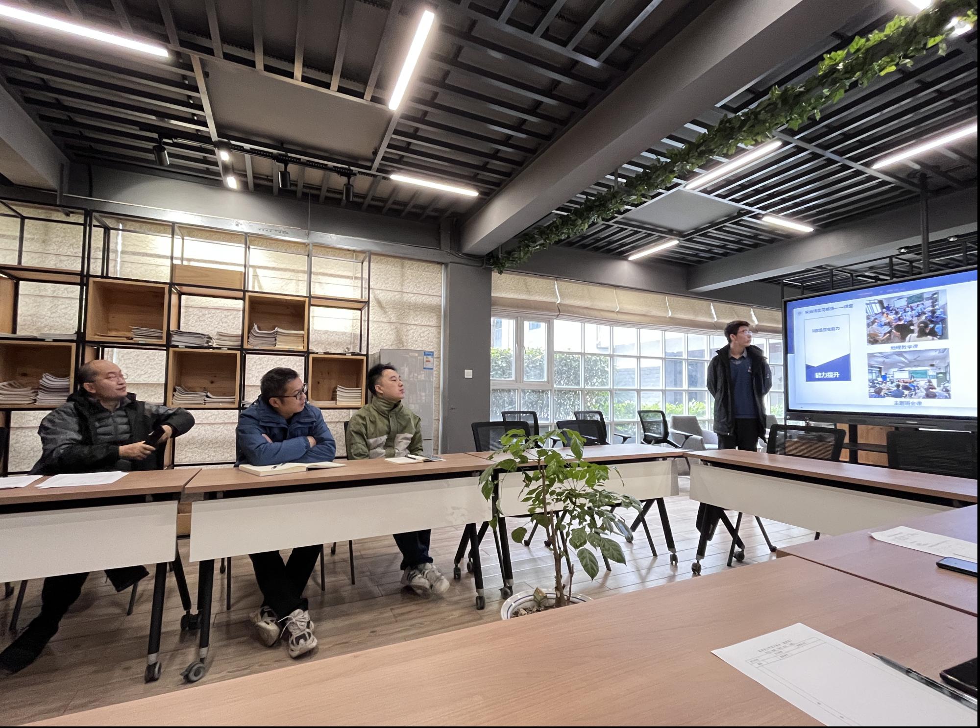 马仁锋教授(左)、骆海军老师(中)、江文政老师(右)对实习生汇报进行点评
