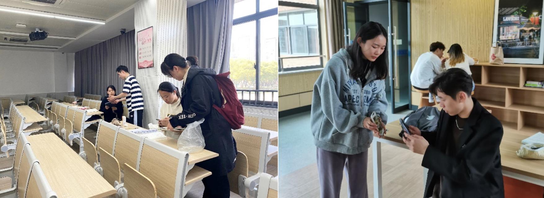 前期,问卷修定后,同学们前往教学区和生活区各处发放问卷,重复一声声“同学你好,请问方便填写一份问卷吗?”,为形成有理有据的调查报告迈出一步又一步。
