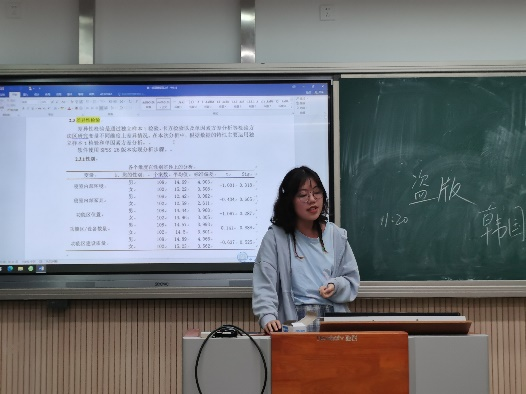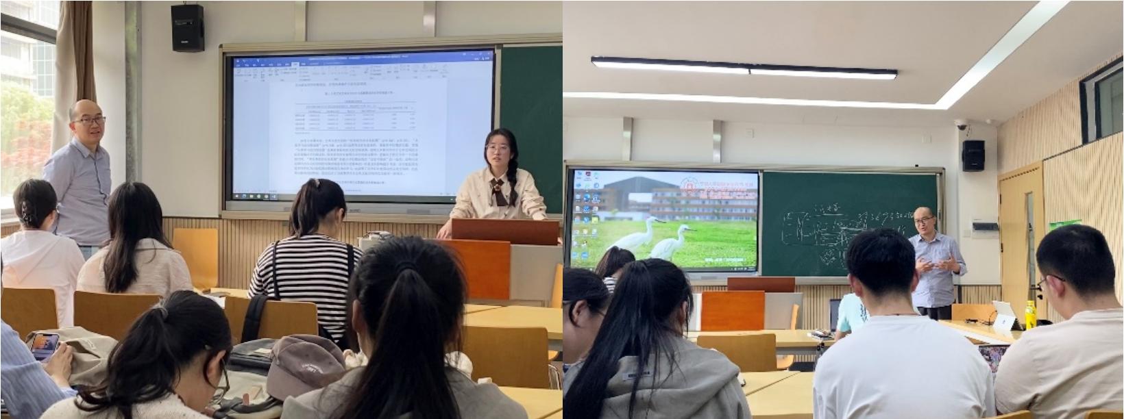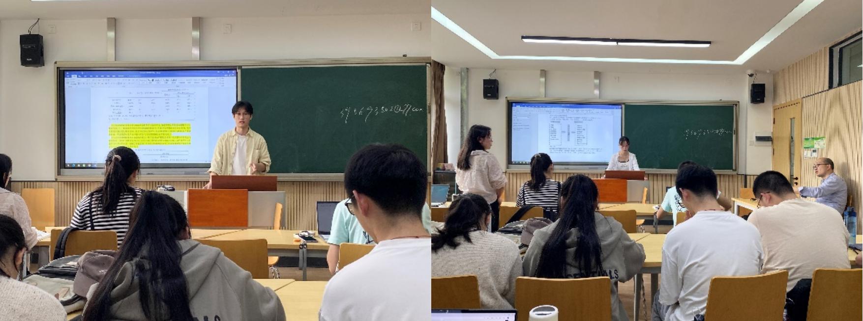 各组汇报覆盖其研究背景、研究过程展示、数据处理与结论介绍等,呈现认真求实的科研态度。马老师逐一点评,提出“文献综述写作需要有自己的评述而非堆砌”“格式要求清晰分级、排版统一”等修改意见,重点强调SPSS20.0等软件和计量方法的科学性与合理性。师生探讨你来我往;汇报思想飞扬、精彩纷呈。