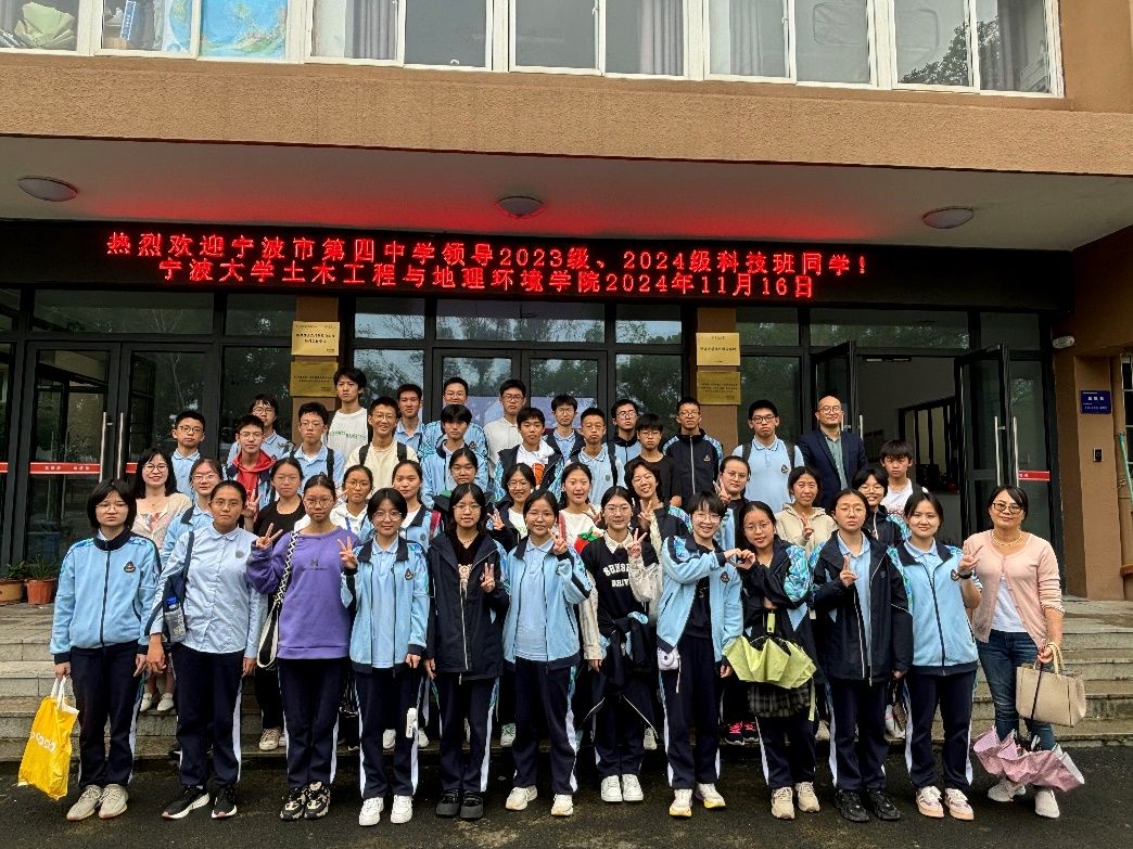 2024年11月16日,宁波市第四中学张晓芳副校长、张蒋军主任带领2023级、2024级科技班同学们,踏进美丽的宁波大学校园,观摩宁波大学理工科教学实验室,并邀请宁波大学土木工程与地理环境学院执行院长兼地理与空间信息技术系党支部书记李加林教授致辞,宁波大学地理与空间信息技术系主任马仁锋教授出席。