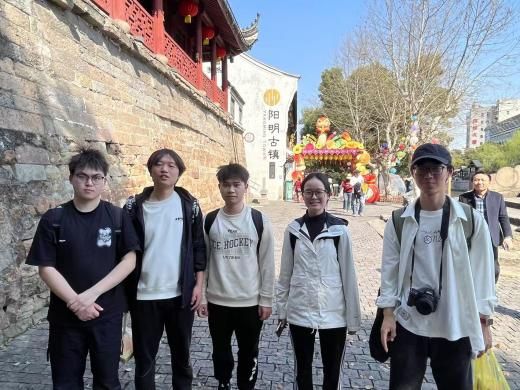 结束在阳明古镇的调研后,我们步行前往王守仁故居纪念馆。在门口,马老师简要提出了参观实习的注意点,还布置了打卡对联真迹的趣味任务。随后,同学们以小组为单位,进入景区内自行参观,感受古人的建筑艺术、体悟王阳明的思想内涵。