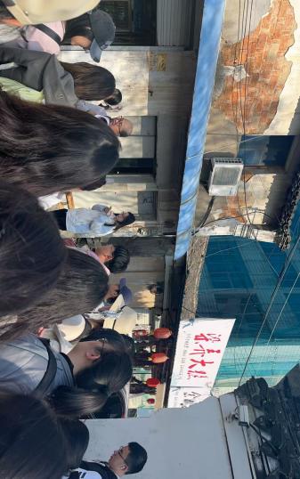 第一组成员在府前路历史文化街区进行了五次访谈,大致对商业街的业态、消费者的偏好进行了了解。作为第一批入选省非物质文化遗产主题街区,该街区商铺众多,店铺装修传统韵味十足,同类店铺特色各不相同。管理方还将非遗资源通过多元化方式转化成可体验、可分享、可消费的文旅元素,举办阳明古镇国潮节、戏曲专场演出等多项活动,其传统感和烟火气引人神往,吸引了来自五湖四海的游客。