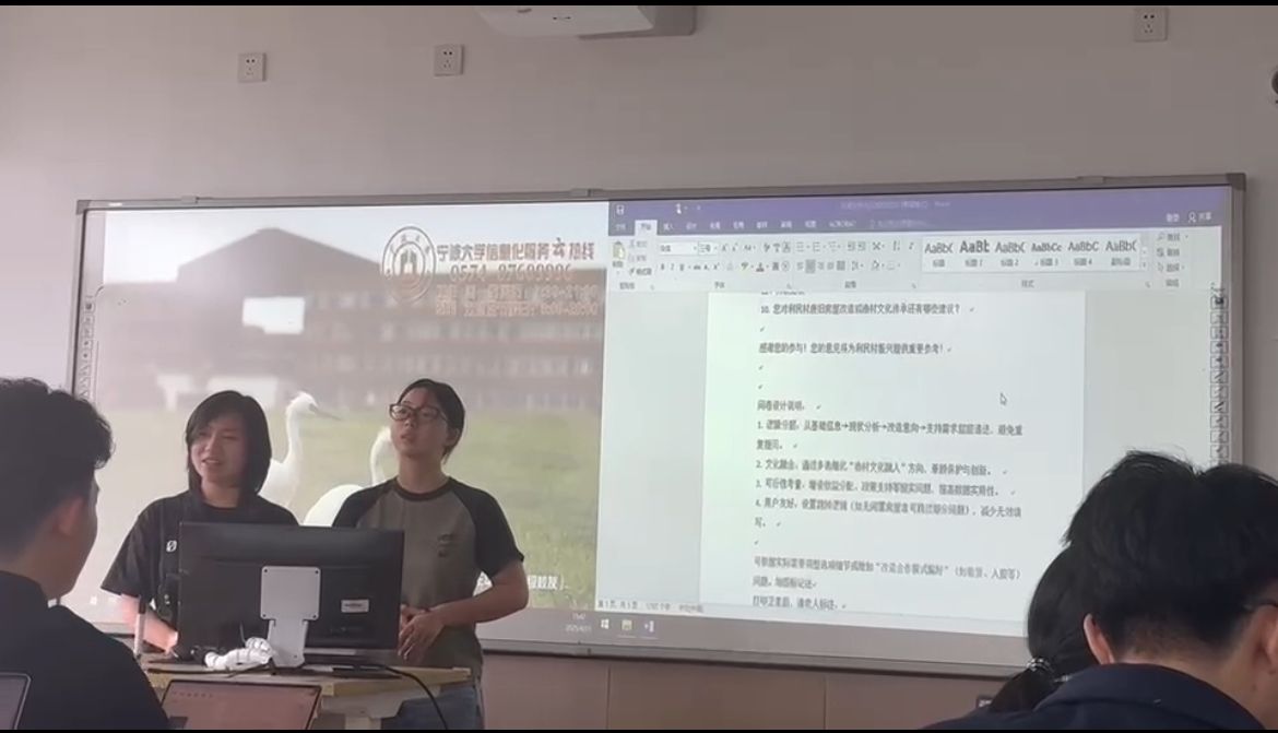 本次课程汇报过程不仅帮助学生进一步理清研究思路与框架,更明确了下一步实地调研的重点方向与实施路径,为即将开展的东钱湖深度调研工作奠定了扎实基础。