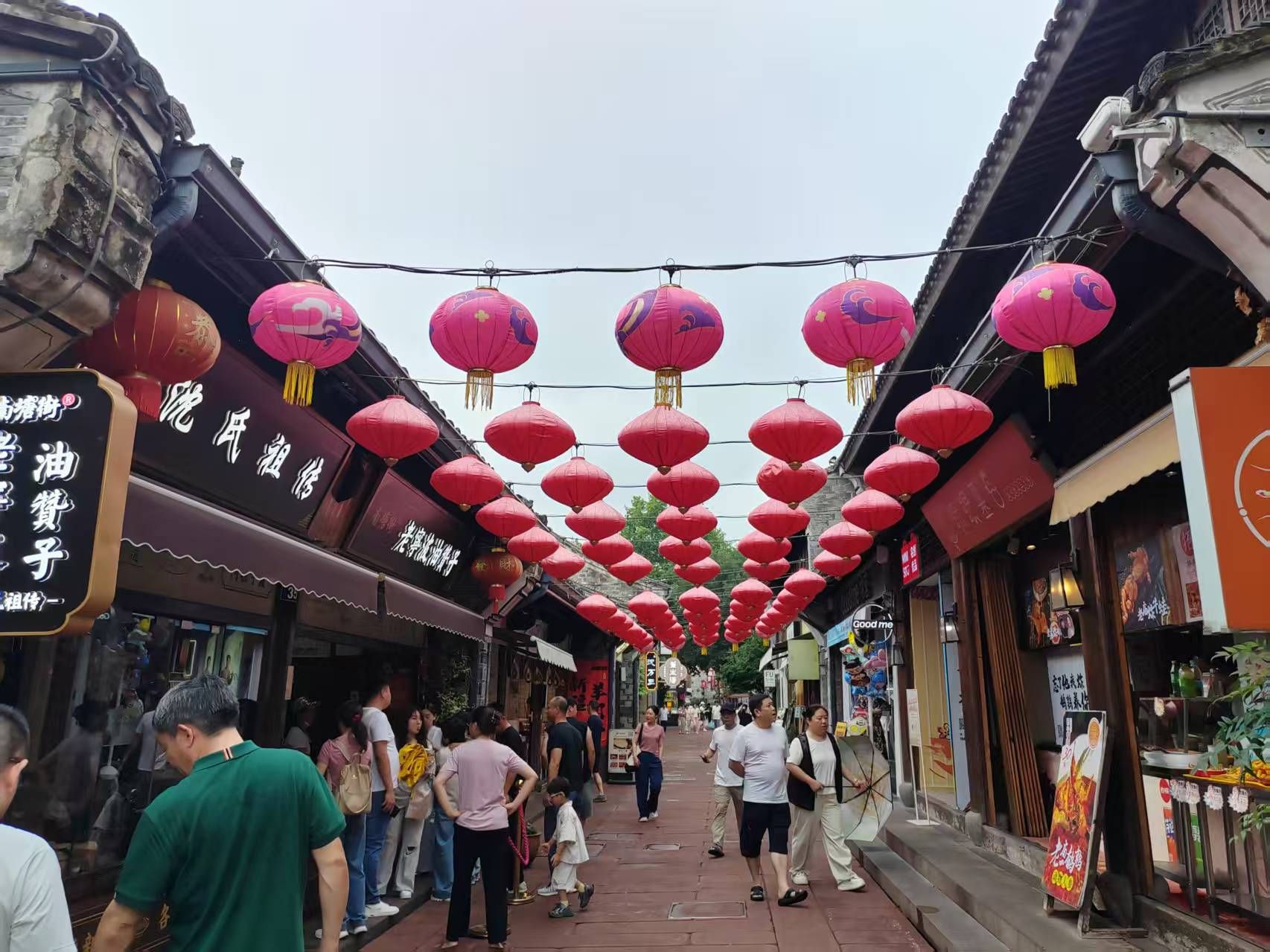 午饭过后,同学们分组开展调研活动,主要通过实地考察、商户访谈和问卷调查,了解南塘老街的配套基础设施情况、店铺业态业务情况、不同时段的客流量等等。调研发现,南塘老街的非遗商户较多,包括缸鸭狗、赵大有等中华老字号,以及白族扎染、德化瓷烧制等国家级非遗项目。北街以“时尚夜经济”为定位,引入Times咖啡馆、后备箱集市等新业态,形成“白天品古韵、夜晚享潮流”的消费场景。2024年春节假期,街区营业额达1455万元,同比增长17.22%,印证了业态创新的市场成效。调研过程中,同学们还偶遇了从新疆来宁波研学的小学生,小朋友对老街的美食与文化给予了肯定。