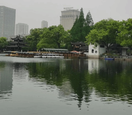 第二站,我们到了南塘老街。在这里我们对周边的三家商铺进行了访谈,了解了南塘老街这边的建设情况和商铺的大致的经营状况,并对南塘老街的业态状况进行了调查,并在老街享用了午餐。这和我们从老街徒步前往了月湖公园。