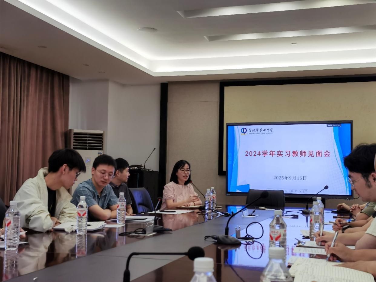 一场细致且隆重的实习教师见面会在学校会议室顺利举行。会上,宁波四中汪老师首先为全体实习生梳理了 2025 年宁波四中实习工作的整体情况:“今年来我校实习的队伍规模较往年显著扩大,不仅有来自宁波大学省内高校的学子,还吸引了北京体育大学等省外知名院校的同学加入,实习学科覆盖地理、政治、体育等多个领域。不同高校、不同学科的实习生齐聚一堂,既能形成跨校跨学科的交流氛围,也为大家相互学习、共同进步搭建了良好平台。