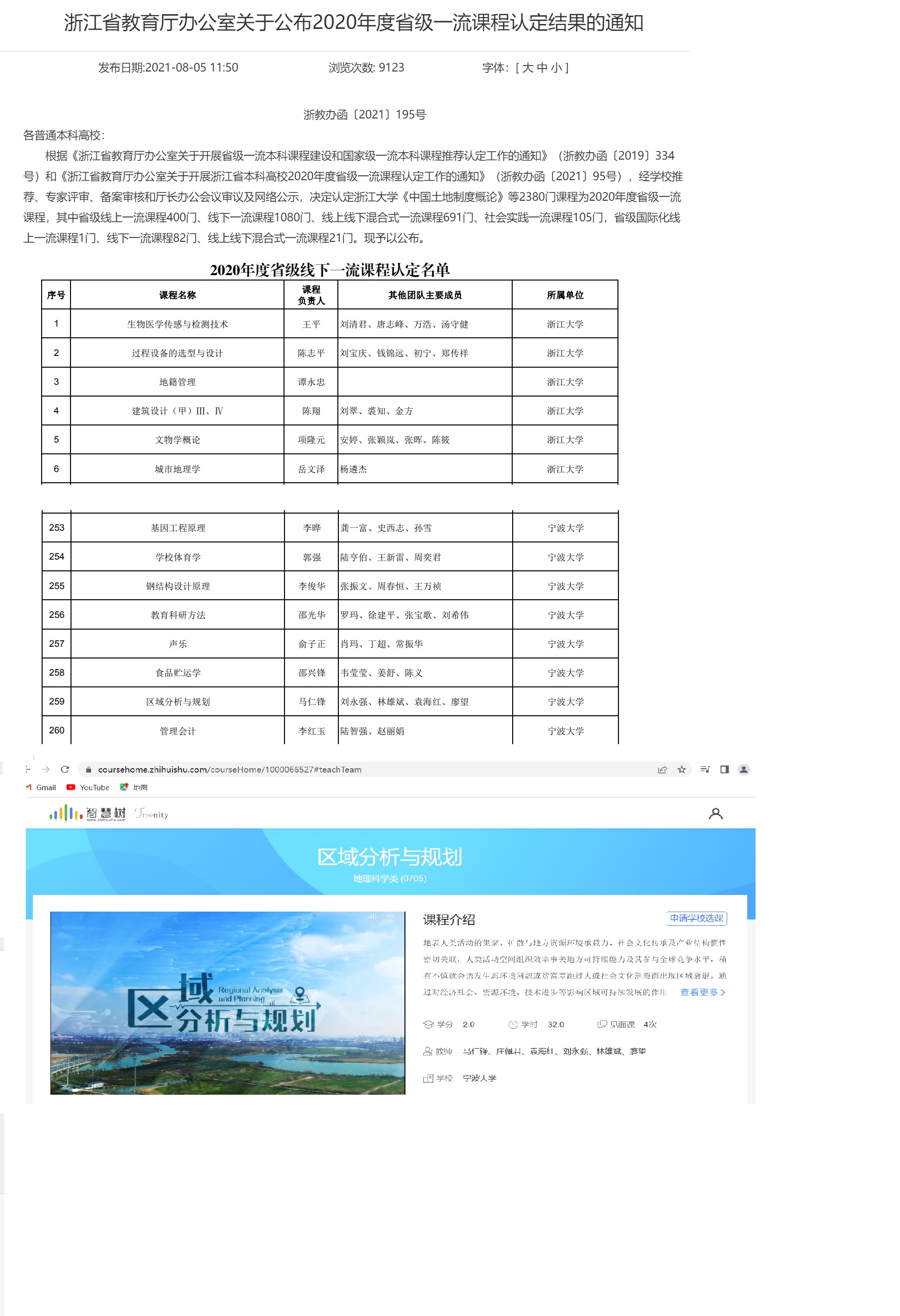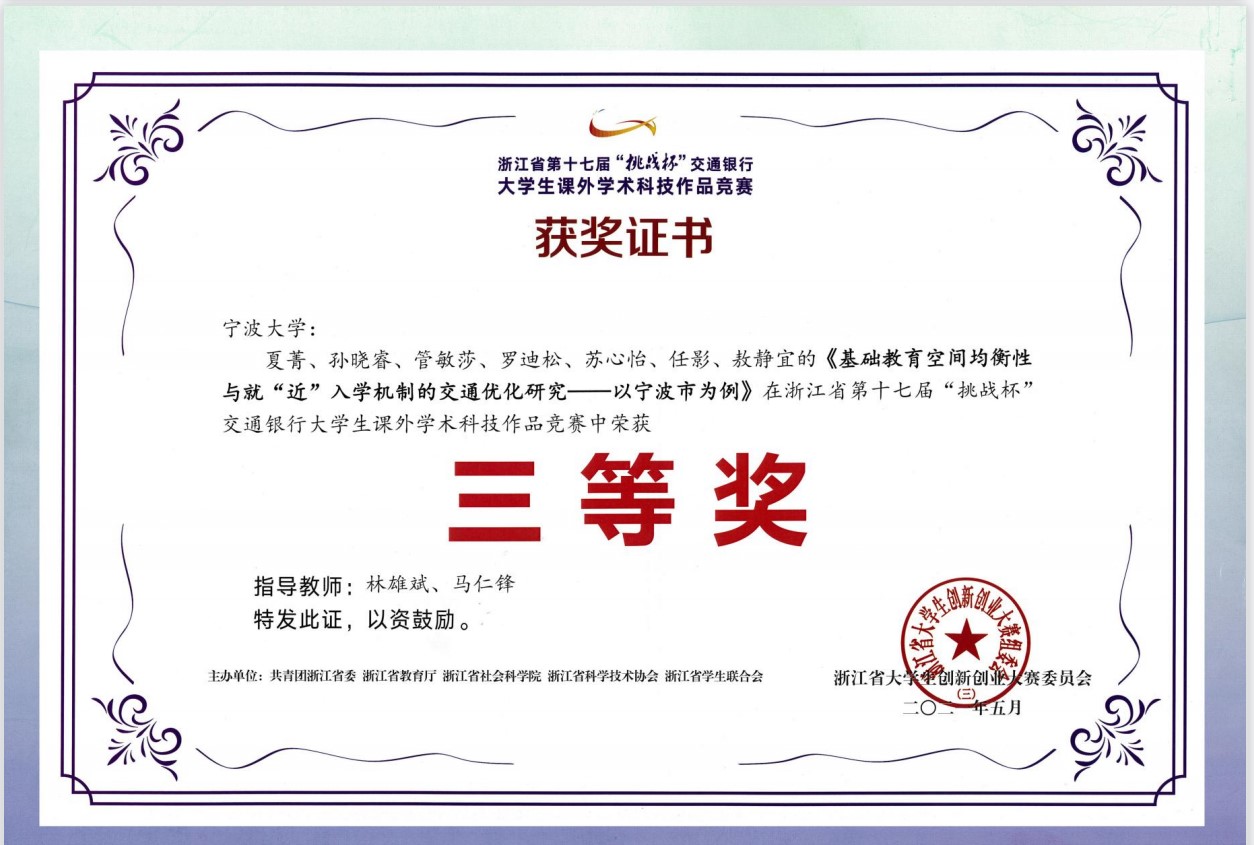 学校实施《宁波大学第七轮岗位设置与聘任实施办法》以来,2019年1月至2022年9月期间地理与空间信息技术系人文地理学与滨海空间规划教研团队积极开拓本科生创新创业模训练新模式,鼓励学生从兴趣出发以赛代训,关切国家重大需求与滨海地区城乡发展热点、难点,注重理论学习与动手实操相结合,积极探索宁波或浙江省城乡发展与土地利用困境突破创新之路。这一教学策略下,地理与空间信息技术系地理科学、人文地理与城乡规划2个专业本科生荣获浙江省大学生乡村振兴创意大赛、浙江省大学科技竞赛、全国大学生土地国情调查大赛等竞赛荣誉十余项。林雄斌老师围绕《经济地理学》《城市与区域交通地理》、马仁锋老师围绕《区域分析与规划》的课程教学实践需求与学生竞赛过程契合,自省课堂教学改革新方向,产出系列教研论著与省市校精品课程。