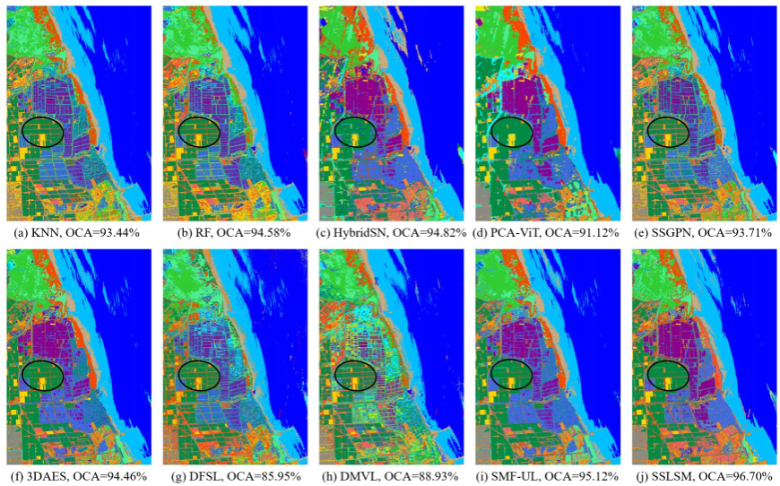 深度学习是高光谱图像分类中一种有效方法,然而使用深度学习进行高光谱图像分类的一个重要前提是有足够的标记样本,这既费时又费力,且标记样本对于训练深度学习模型是必不可少的。因此本文提出了一种基于光谱掩膜的自监督学习(SSLSM)的高光谱图像分类方法。该方法主要包括两个步骤:自监督预训练和微调。首先,考虑到高光谱图像的丰富光谱信息,我们提出以掩膜光谱重建作为前提任务,未掩膜的数据被依次输入到由多层变压器组成的编码器和解码器中,用于掩膜光谱重建的特征学习。其次,我们使用参考样本对网络进行微调,创新性地将编码器和解码器级联,以进行深度语义特征提取,进一步提高了在下游分类任务中的特征提取能力。实验结果表明,与其他方法相比,SSLSM对印度松数据集、帕维亚大学数据集和盐城湿地数据集的分类准确率最高,分别为96.52%、97.03%和96.70%。相关研究成果发表在《IEEE Transactions on Geoscience and Remote Sensing》,该期刊2023年度影响因子为8.2.