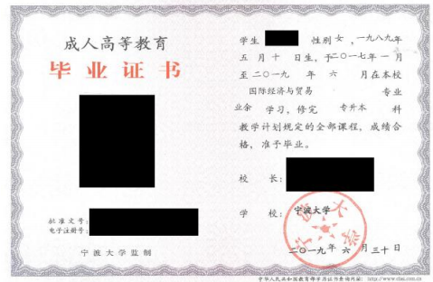 学生修满本专业教学计划规定的学分,成绩合格,符合毕业条件者,由宁波大学颁发经教育部电子注册的高等学历继续教育毕业文凭;符合学士学位授予条件的本科毕业生,授予学士学位。