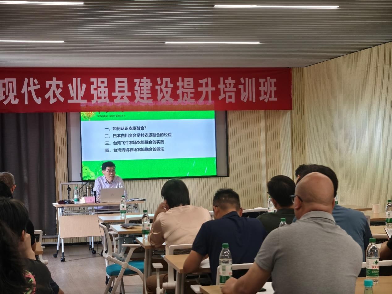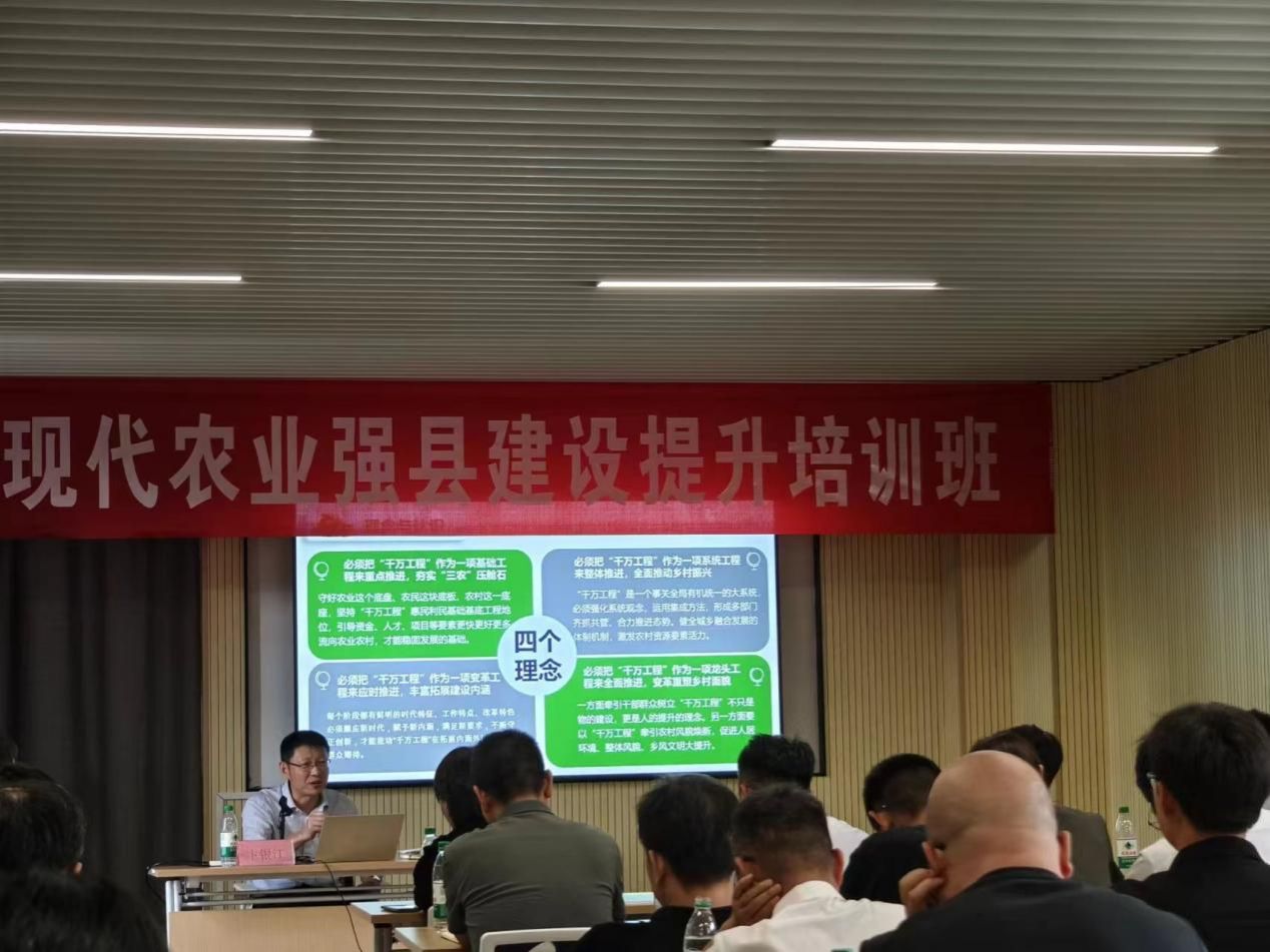 为持续推动现代化农业强县建设,加强对各基层干部和领导的提能升级培育,加快农业深度转型升级,提高农业全要素生产率,打造宁波市现代化农业强县,为期三天的“2024现代化农业强县建设”提升培训于7月10日在宁波大学开班授课。本次课程在宁波大学土木工程与地理环境学院党委委员贺智敏和宁海县人民政府副县长杨周宏的动员讲话中正式拉开帷幕。随后,宁波市农业农村局副书记、副局长卞银江,宁波大学教授林雄斌、周彬、马仁锋,副教授乔观民先后为学员授课。