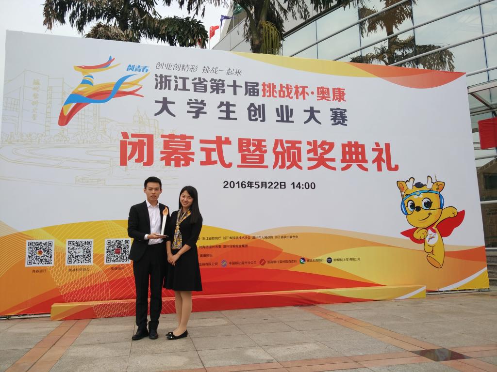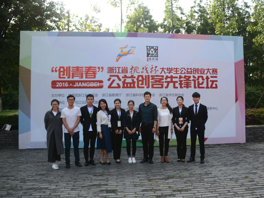 王侃、俞金波、沈妍伶老师指导的,黄小龙等同学的作品《宁波市江北区清源环境观察中心》荣获金奖;俞金波、孙伟伟老师指导的,李煜等同学的作品《宁波尚观信息科技有限公司》荣获银奖。“清源”项目还被答辩现场的百名社工评选为”十佳公益创业项目“之一,同时被资本方所青睐,与宁波市江北甬天工贸有限公司进行公益资本对接。
