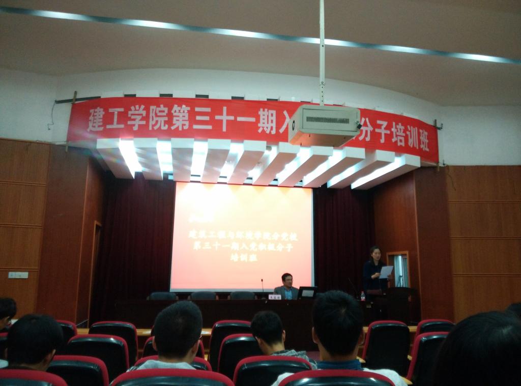 党校建筑工程与环境学院分党校第三十一期入党积极分子培训班在建工学院报告厅拉开序幕,本次培训班共有64名入党积极分子参加.办公室主任华颖老师对课程安排进行了讲解并对入党政策做了宣讲,内容涵盖党员发展程序,积极分子要求等各个方面.分党校校长、党委书记王益澄参加了本次开班仪式,并且就“中国梦与宁波梦”给同学们带来了党校第一课。课程内容包含中国梦与宁波梦的内容,同时与学院专业情况相结合,生动形象。