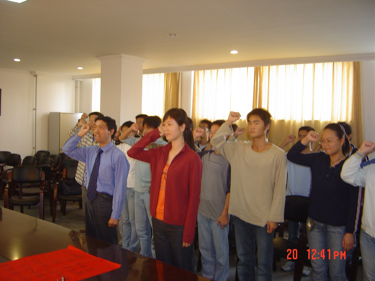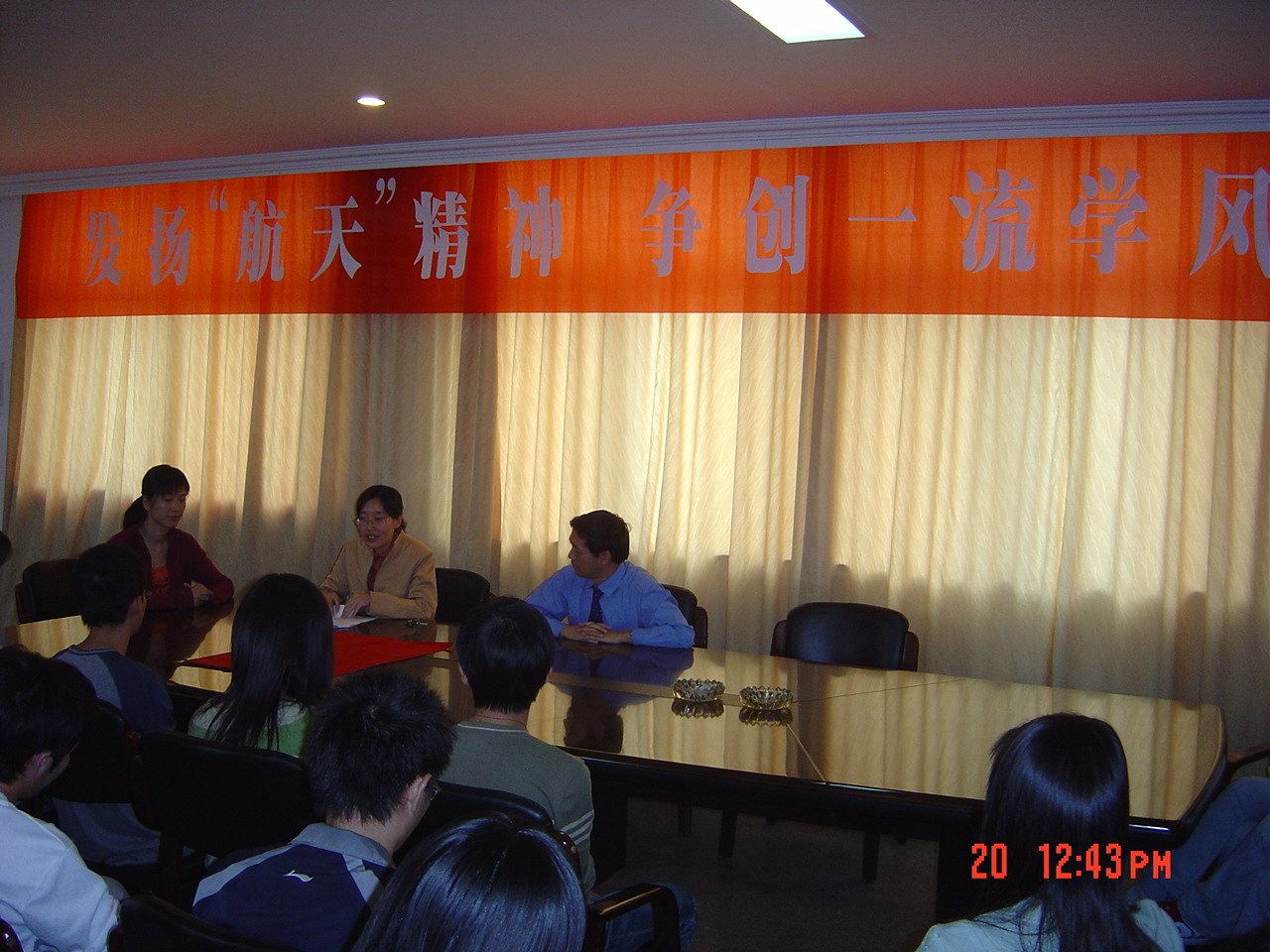 会上,该班班主任王新堂教授提出,要发扬航天精神,争创一流学风,积极应战城管03班于10月16日提出的考研挑战,并带头宣誓和签字:考研目标是报名率要达100%,考取率要达60%。