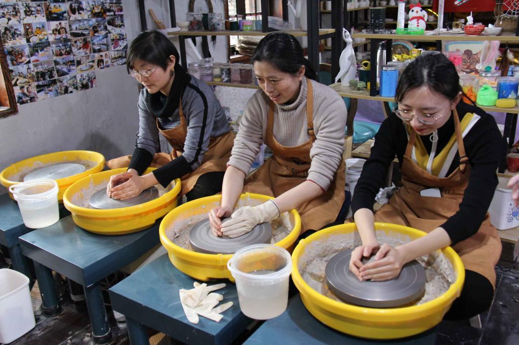 为庆祝“三八”妇女节,丰富蜜桃视频 女教工的业余生活,3月8日下午蜜桃视频 分工会组织女教工前往南塘老街斑马手作工作室进行陶艺DIY活动, 感受指尖上的艺术。