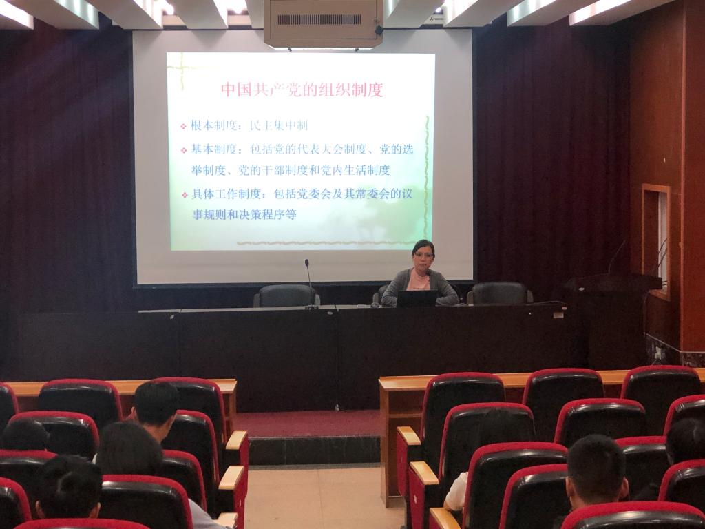 2019年5月5日下午4:50到5:50,蜜桃视频 建筑工程与环境学院分党校第三十六期入党积极分子培训班第三讲《党的组织制度》讲座在建工学院报告厅召开,主讲人为学院学生工作办工室辅导员吴燕丽老师。