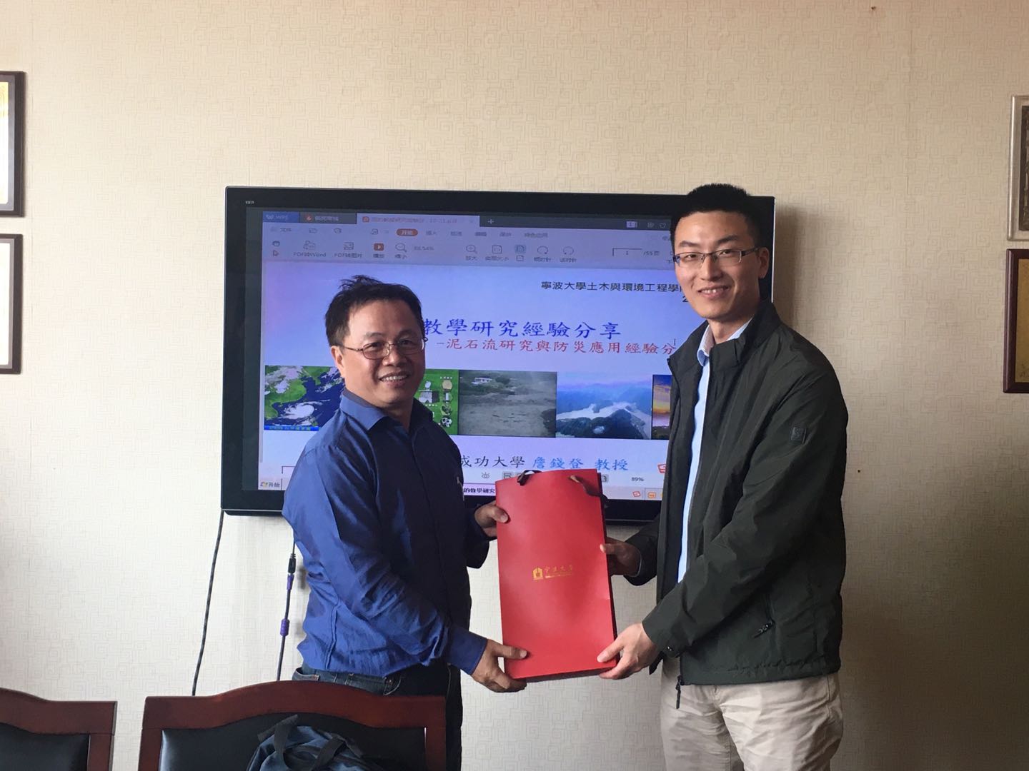 2019年10月21日中国台湾成功大学水利及海洋工程系特聘教授詹钱登应邀来蜜桃视频 进行学术交流,并做了题为“泥石流研究与防灾应用经验分享”的讲座。院长助理章子华热情接待了詹钱登教授。詹钱登教授从泥石流研究与防灾应用的主题出发,结合自己在求学、任教、科研和服务社会过程中的经历和感悟,与参加本次讲座的师生进行了深入交流。