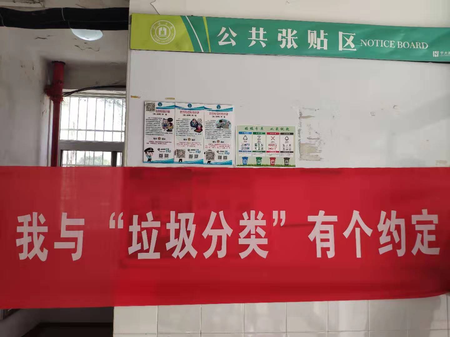 在学生宿舍区,学院开展了垃圾分类宣传活动,同学们以寝室为单位,将与垃圾分类主题相关事物进行联系,以照片,视频等形式记录,并观看海报上关于垃圾分类有关的知识,以“我与垃圾分类有个约会”的参赛材料用文字、照片等参赛方式,提交至学院,后期学院将评审公布一批垃圾分类示范寝室。