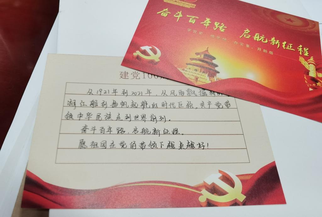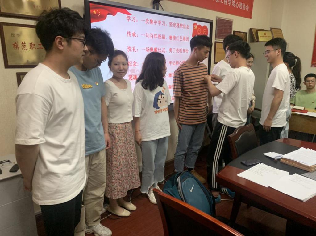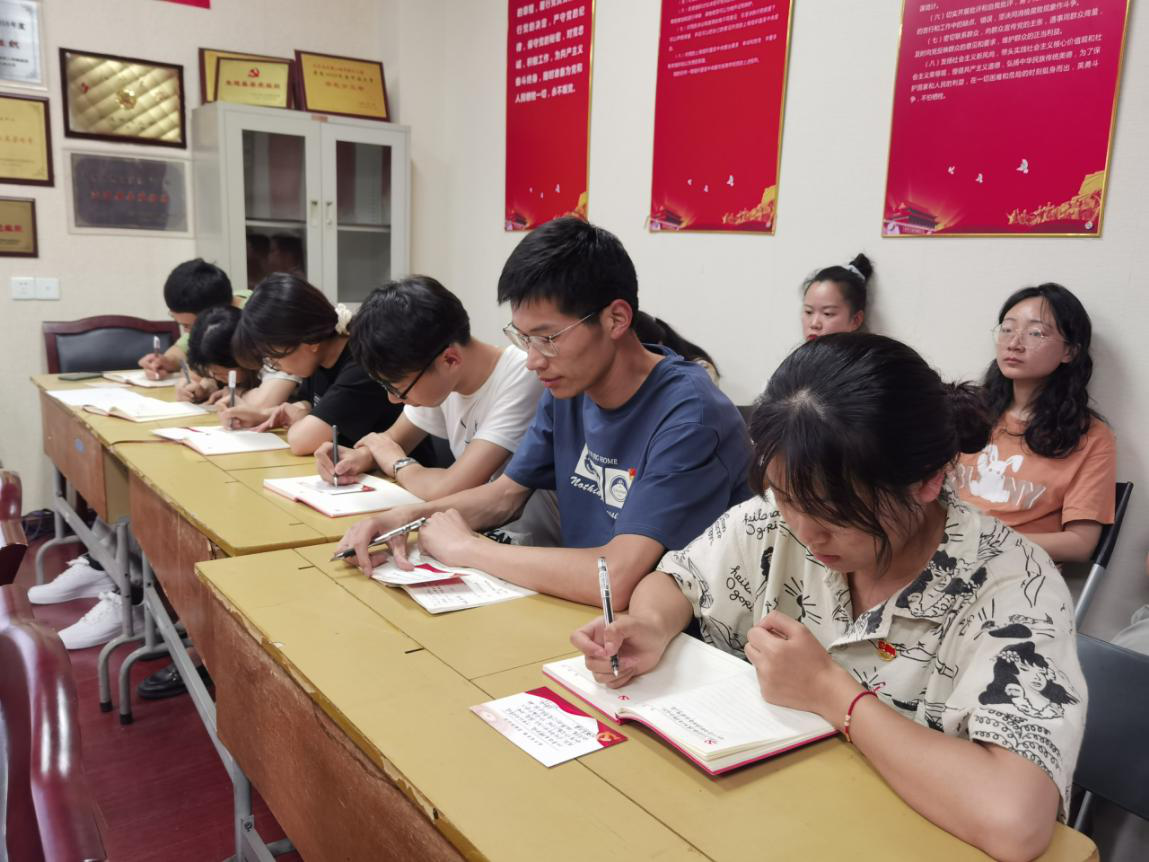 活动在国歌声中拉开帷幕,本次活动分为“学习”、“传承”、“洗礼”、“纪念”、“灵魂”、“交流”、“守护”等七个环节来表达党支部全体党员对党百年华诞的庆祝。开展一次集中学习,党支部书记潘斌杰带领大家学习蜜桃视频 最受师生喜爱的书记汪盛科老师的优秀事迹。赓续红色基因,支部组织成员们 “对党说句心里话”,让党员们纷纷写下自己的心里话,有对党祝福,有歌颂党的功绩,还有对自己的要求等等;进行一次思想洗礼,以佩戴党徽,亮明党员身份的方式,提醒今年新发展的党员们牢记党员使命,为党为国服务;庆祝政治生日,通过给6月入党的同志集体过政治生日,使党员不忘当初入党的誓言初心。学习一堂主题党课,针对近期的两个“宣言”,新党员张莹结合两个宣言和党史,为支部成员上了一堂时效性强、内容丰富的微党课。活动中,支部成员针对此次活动纷纷发表了自己的感言。王新雨同志言道:站在建党百年的历史点上,共产党员更应该脚踏实地,把全心全意为人民服务真正落到实处。随后,支部在王佳乐同志的带领下,集体进行宣誓,重温入党誓词,铿锵有力的声音在会议室中回荡。