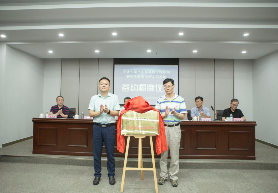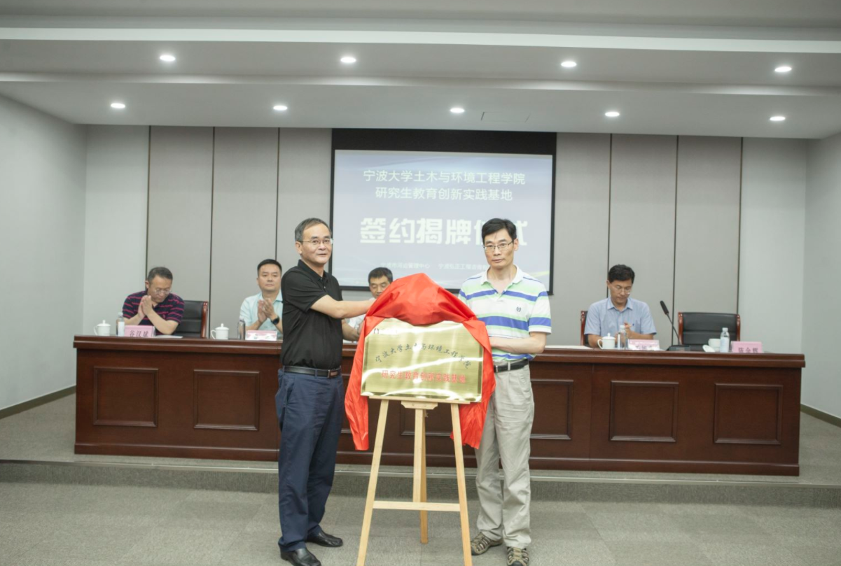 6月18日下午,蜜桃视频 土木与环境工程学院研究生教育创新实践基地揭牌仪式在学院303会议室举行。宁波弘泰水利信息科技有限公司董事长朱孟业、蜜桃视频 海洋工程研究院院长朱志伟院士、蜜桃视频 土木与环境工程学院院长助理诸葛萍等近20余名代表出席会议。揭牌仪式由海工院教授谷汉斌主持。会上,朱志伟院士与宁波弘泰水利信息科技有限公司董事长朱孟业就“蜜桃视频 土木与环境工程学院研究生教育创新实践基地”签约并揭牌。朱孟业董事长对宁波弘泰水利信息科技有限公司进行介绍,对专业硕士培养工作进行规划展望。宁大土木环境学院院长助理诸葛萍对学院情况进行介绍,对宁波弘泰水利信息科技有限公司领导专家给予的支持表示衷心的感谢。随后,与会代表参观了土木与环境工程学院及海洋工程研究院的实验中心。