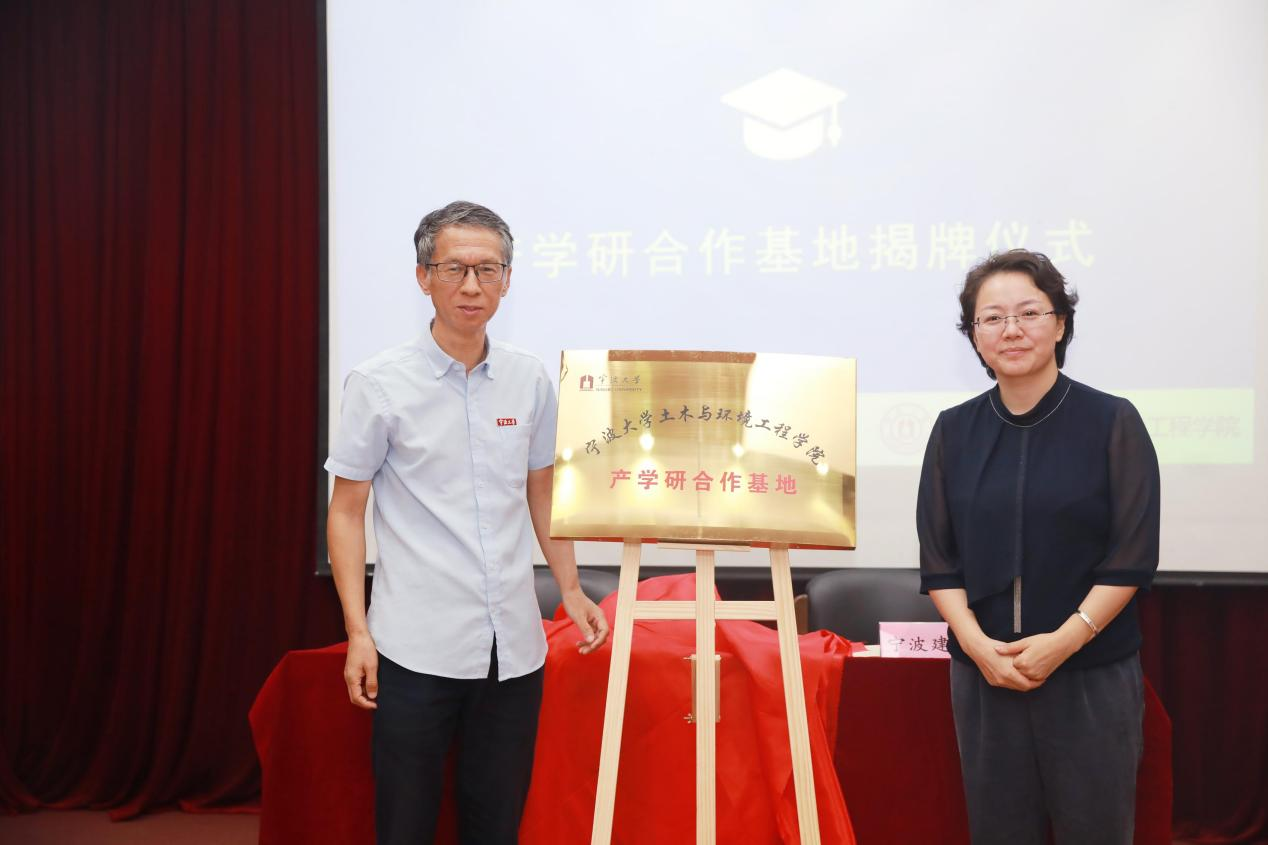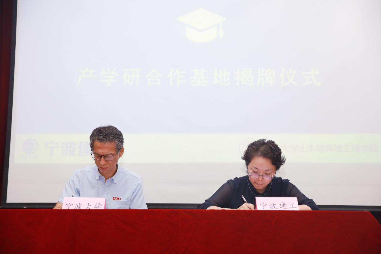 随后,蜜桃视频 土木与环境工程学院与宁波建工工程集团有限公司就共建研发平台、人才培养等方面达成合作协议,蜜桃视频 土木与环境工程学院院长郑荣跃和宁波建工工程集团有限公司董事长陈静代表双方进行了产学研合作签约并为“产学研合作基地”隆重揭幕。